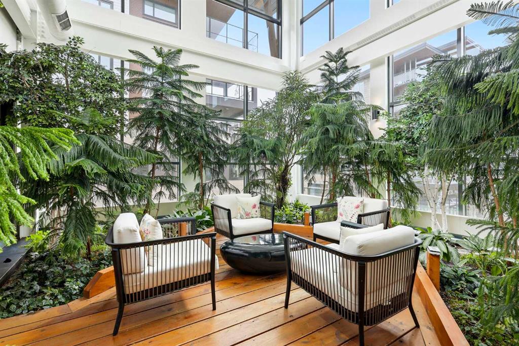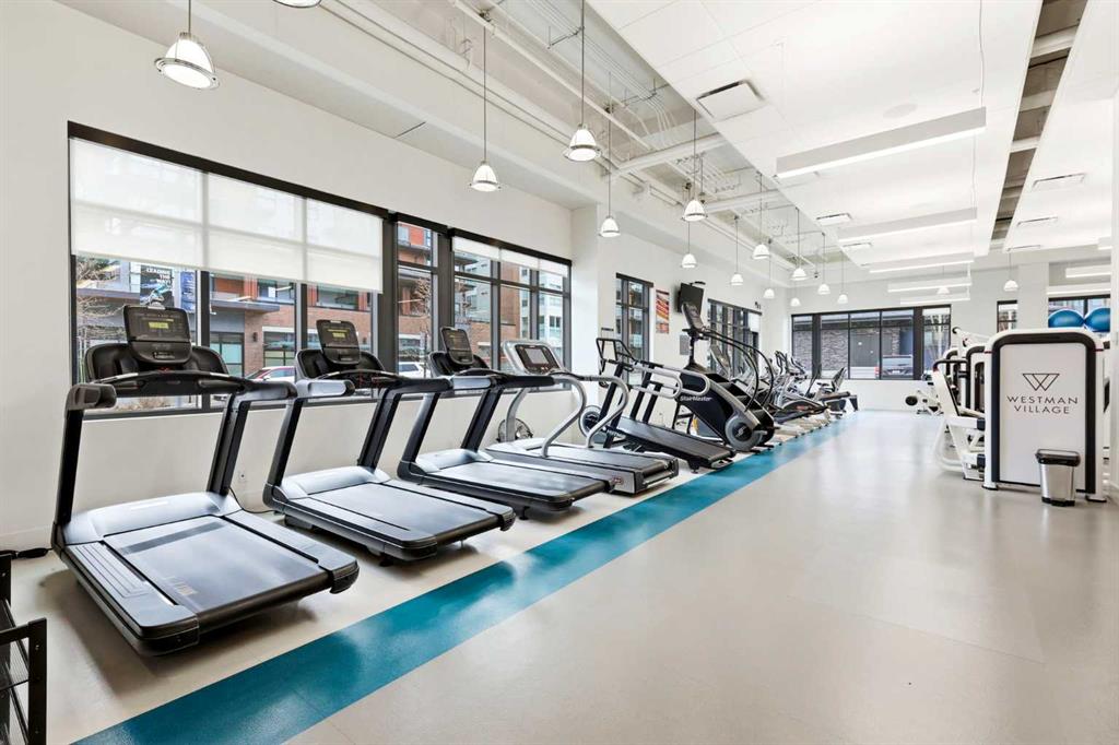 **Open House April 19th 2:00PM-5:00PM** Units like this don’t come up often. This is one of the rare ground floor layouts in Westman Village with its own private entrance, soaring 12 foot ceilings, and oversized windows that flood the space with natural light and make it feel far more like a townhome than a typical condo. The layout is clean and functional with a modern kitchen featuring a large island, sleek cabinetry, and stainless steel appliances that opens directly into the living and dining space, all of it oriented toward the courtyard. The patio is fully covered for year round use and looks into the interior courtyard where you get the sound of the water features and a quiet, private extension of your living space. The bedroom is generous with a walk in closet, there is full size in suite laundry, air conditioning, and titled underground heated parking with additional storage. From a pure livability standpoint, this unit just works. Then you layer in what Westman Village actually is. Full concierge, secure access, and an amenity package that is in a different category than almost anything else in the city. Indoor pool, hot tub, saunas, full fitness center, gymnasium, golf simulator, theatre room, wine vault, workshop, art studio, walking track, library, plus restaurants, café, and everyday essentials right inside the village. You are also just steps to Mahogany Lake with access to pathways, beaches, and everything the community offers. This is one of the few buildings where the condo fees actually make sense because you use what you’re paying for. Whether it’s a young professional, a couple, downsizer, or someone with a pet looking for that private entry setup, this is a rare opportunity to step into a lifestyle that’s hard to replicate anywhere else in Calgary.
