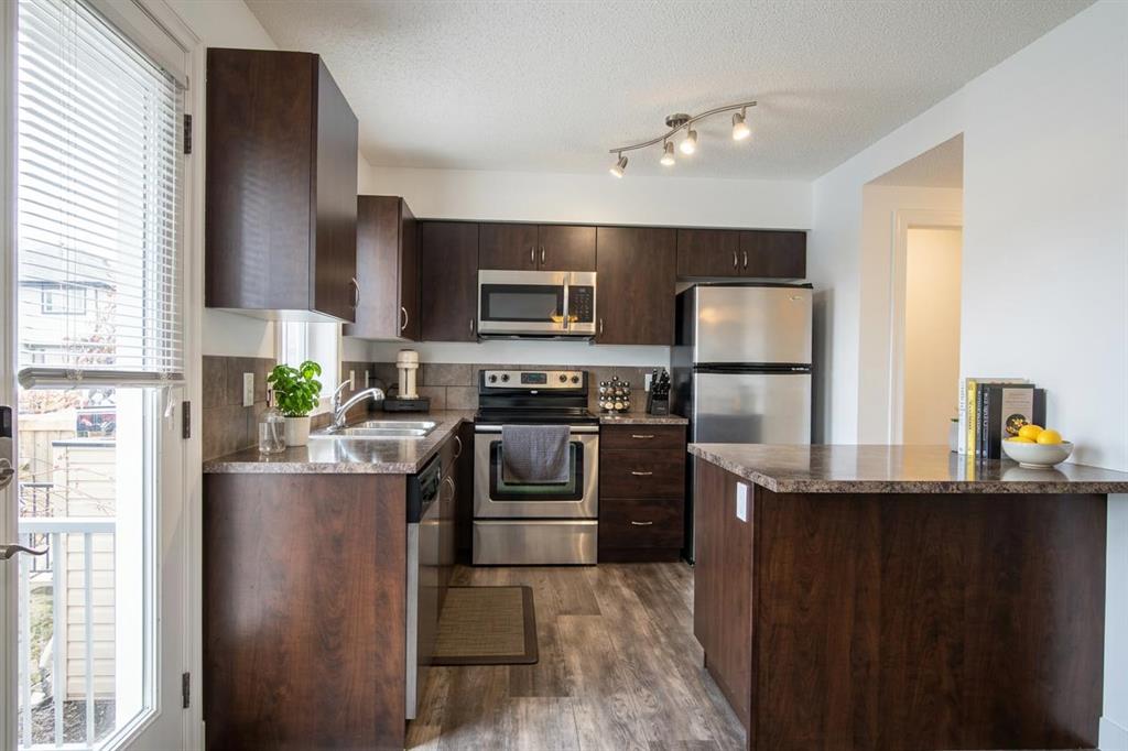 Step inside and feel the difference—this fully developed Copperfield townhome isn’t just a place to live, it’s where life opens up. With nearly 1,700 sq ft of thoughtfully designed space, this 3-bedroom home greets you with standout curb appeal and a welcoming covered front porch—the kind of spot you’ll actually use on summer evenings. The main floor is bright, open, and elevated with fresh paint and new vinyl plank flooring that adds a fresh, modern feel the moment you walk in. The kitchen is the heart of the home, featuring stainless steel appliances, rich espresso cabinetry, a stylish tile backsplash, and a generous breakfast bar that naturally becomes the gathering place for morning coffee or late-night conversations. Upstairs, you’ll find three well-sized bedrooms, including a primary retreat with a walk-in closet and private ensuite. The second bedroom connects next to another full bathroom—perfect for guests, kids, or a roommate setup that actually makes sense. Downstairs, the fully developed basement gives you that extra space everyone wants—a large rec room ready for movie nights, a home gym, kids’ chaos, or your own escape after a long day. Tucked into a family-friendly community, you’re just minutes from schools, shopping, and transit—everything you need, right where you want it. Homes with this much space, style, and value don’t sit around for long… and once you see it, you’ll understand why.