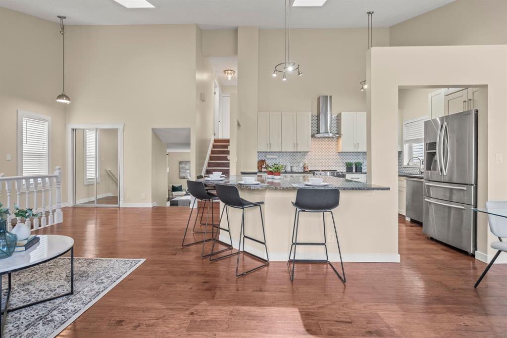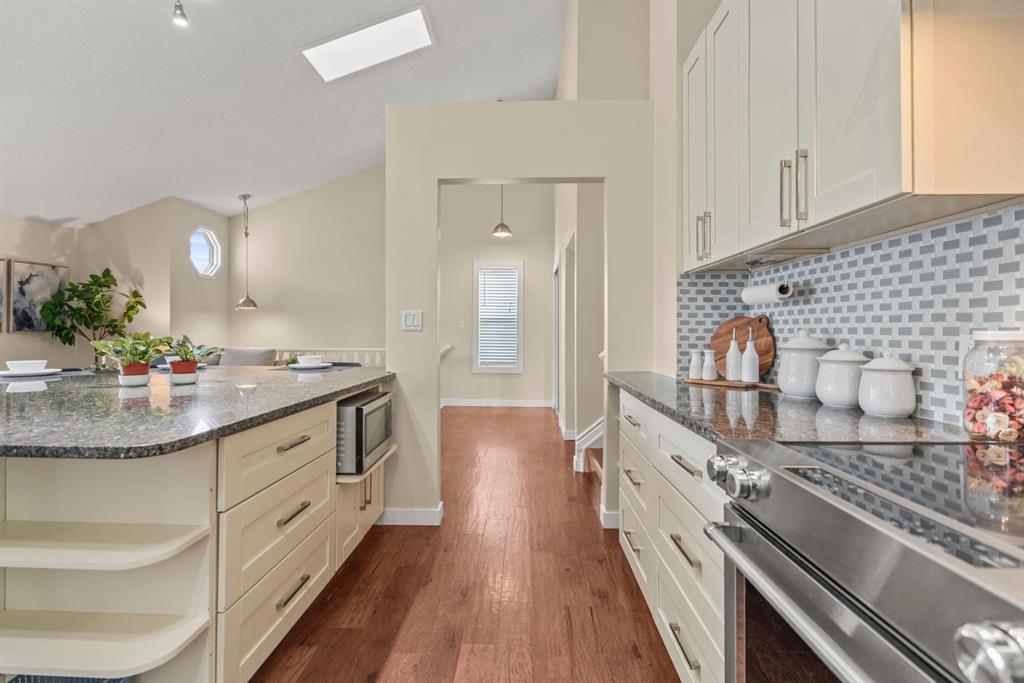 Nestled in the heart of one of Calgary’s most family-friendly communities, this spacious and lovingly cared-for 4-level split offers nearly 1,900 sq. ft. of comfortable, functional living space — perfect for a growing family. Designed with connection and everyday ease in mind, this home features 4 bedrooms and 3 bathrooms, ensuring everyone has their own space. Step inside to a bright, open main level where large windows fill the living and dining areas with natural light. The beautifully upgraded kitchen is the heart of the home, with abundant cabinetry, stainless steel appliances, and plenty of prep space for weeknight dinners or weekend gatherings. Upstairs, you’ll find three inviting bedrooms, including a serene primary suite with its own private ensuite and a peaceful patio overlooking the backyard — an ideal spot for your morning coffee. The third level is made for family time, with a cozy wood-burning fireplace that sets the tone for movie nights or game nights. A fourth bedroom on this level offers flexibility for a home office, guest room, or playroom, along with a full bathroom and convenient laundry area. The lower level adds even more possibilities with a large recreation space and a dedicated workshop or storage room. Outside, the fenced backyard is a private retreat — perfect for kids and pets to play, hosting summer BBQs, or simply relaxing under mature trees. The sunny deck offers space to unwind, with no neighbours behind for added privacy. A double attached garage adds everyday convenience, and the charming front balcony enhances the home’s curb appeal. Tucked away on a lovely street, you’ll enjoy easy access to parks, playgrounds, schools, and all the wonders of Fish Creek Park — all just moments away. With recent updates including most windows (2013), shingles (2018), siding (2013), and a newer hot water tank (2024), Fireplace WETT Certification 2025 and new central Vacuum this home is move-in ready. A wonderful opportunity to settle into a welcoming community where families thrive and nature is right on your doorstep.