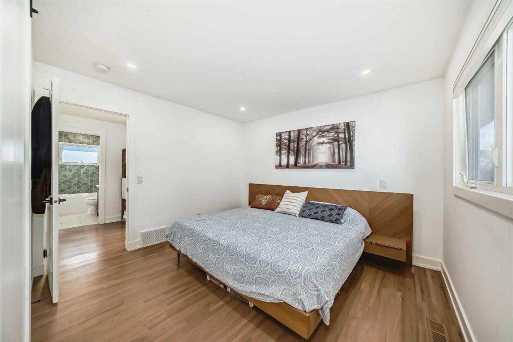 Welcome home to this thoughtfully renovated Wildwood bungalow, ideally located on a quiet, tree-lined street in one of Calgary’s most established and sought-after inner-city communities. Extensively renovated between 2019 and 2022 and designed by Amanda Hamilton Interiors, this home blends timeless design with modern functionality. The main floor is bright, open, and welcoming, thoughtfully designed for both everyday living and effortless entertaining. The chef-inspired kitchen is the heart of the home, featuring quartz countertops, custom full-height cabinetry, stainless steel appliances, a gas range, and carefully selected modern fixtures and finishes. The seamless connection between the kitchen, dining, and living areas creates a warm, inviting space ideal for hosting family and friends or enjoying quiet evenings at home. The primary suite is a true retreat, offering a spacious walk-in closet and a spa-inspired ensuite complete with dual vanities, a walk-in shower, heated floors, and a steam shower. An additional main-floor bedroom and full bathroom provide flexibility for guests, children, or a home office. The fully developed basement expands the living space even further with a generous media and recreation area, two additional bedrooms, a full bathroom, and a dedicated laundry area—perfect for families or multi-generational living. Behind the scenes, this home has been comprehensively upgraded to provide long-term peace of mind. Renovations include all new electrical and plumbing, upgraded HVAC ducting, furnace and hot water tank, enhanced insulation throughout (including insulated rim joists), new vapour barrier, and new drywall on both the main floor and basement. Original hardwood floors have been refinished and paired with basement carpet. Additional comfort features include heated floors in all three bathrooms, air conditioning, air sanitation purification system. The exterior has been fully refreshed with Hardie board siding, new windows and doors, a new roof, eaves, soffits, and fascia, enhancing both curb appeal and durability. The backyard is designed for enjoyment and entertaining, featuring a large deck and fire pit, while the oversized 26’ x 22’ double detached insulated garage offers ample storage and parking space. Within walking distance to Wildwood Elementary School, soccer fields, tennis and pickleball courts, a hockey rink, playground, Wildwood Playschool, and a community garden, this neighbourhood is ideal for active lifestyles. Enjoy quick access to Edworthy Park’s extensive pathways and green spaces, and easy connections to Bow Trail, placing downtown Calgary just minutes away.This exceptional home offers the rare combination of thoughtful design, extensive renovations, and an unbeatable inner-city location—perfect for those seeking quality, comfort, and community. Book your showing today!
