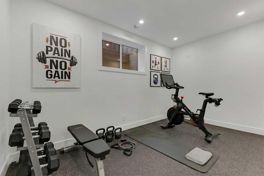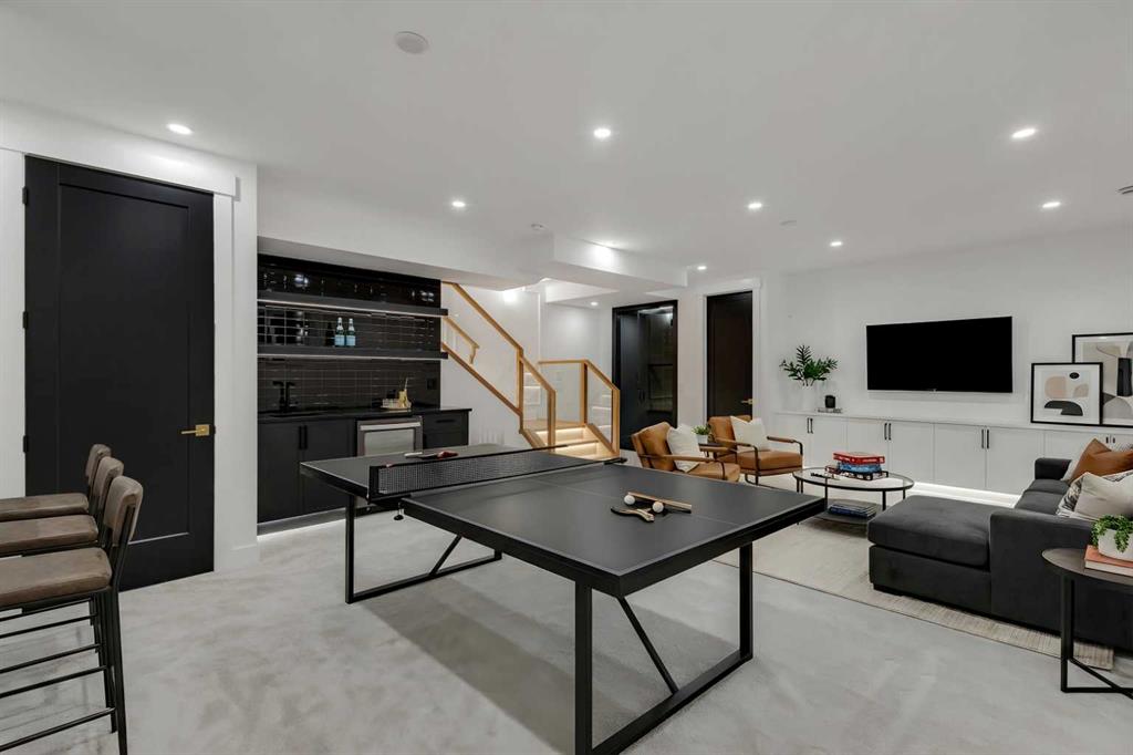The fully developed basement expands the home’s versatility with a large recreation space featuring a custom wet bar, a fourth bedroom, full bathroom, quiet home office, dedicated gym area, and a temperature-controlled wine room with custom shelving. Designed with flexibility in mind, this level easily accommodates entertaining, work, and relaxation.