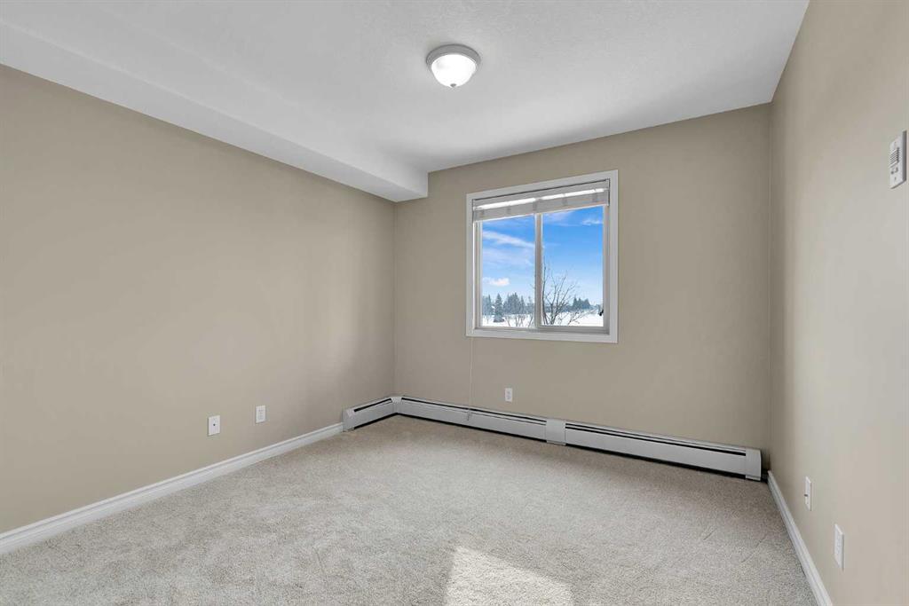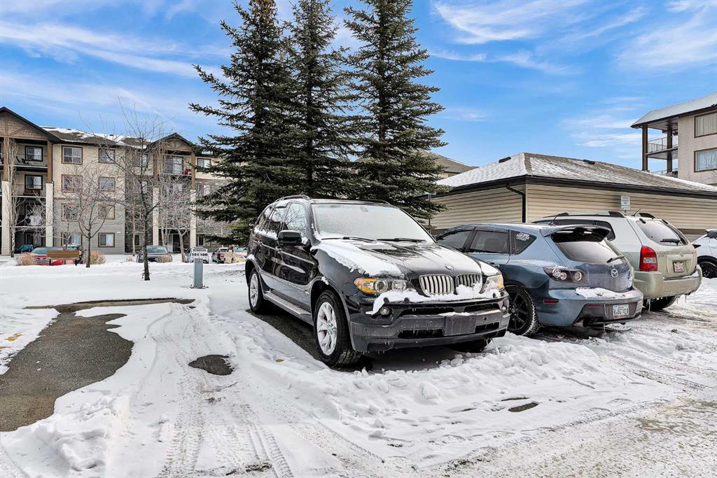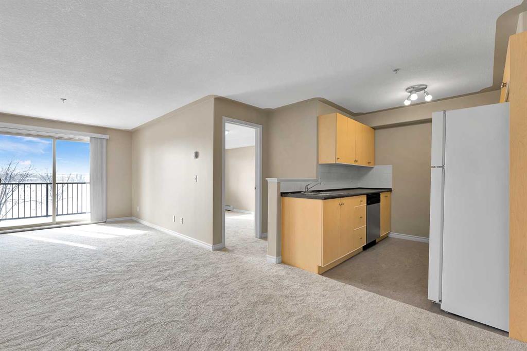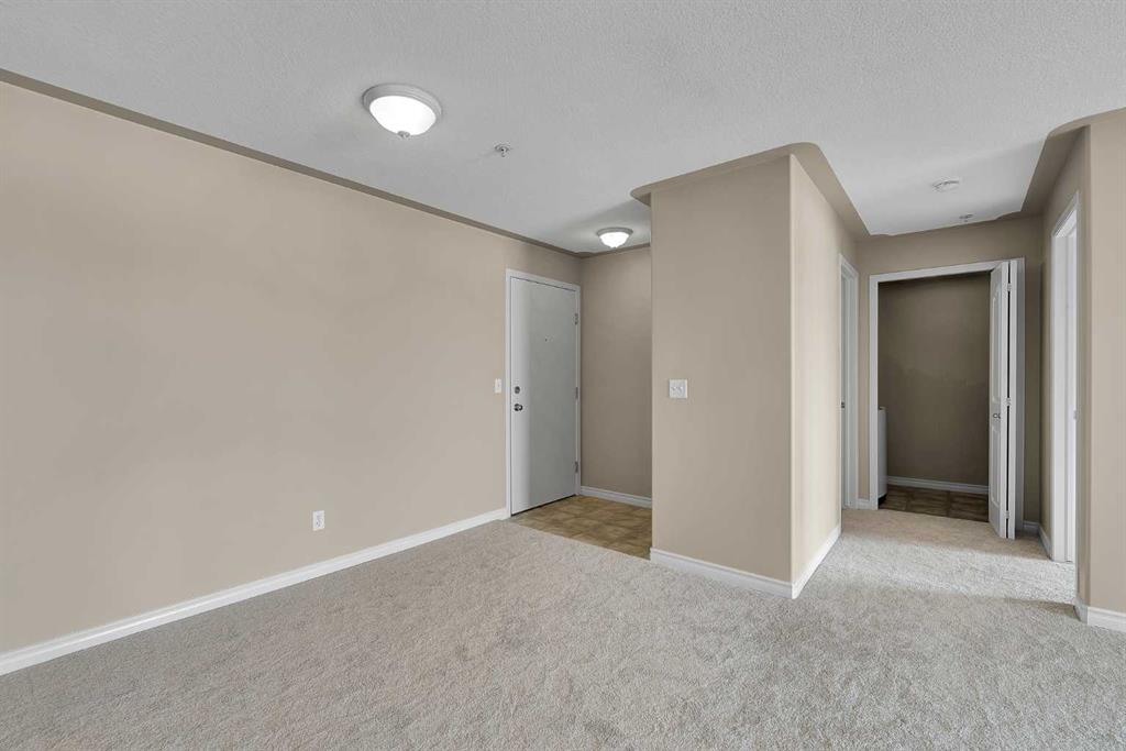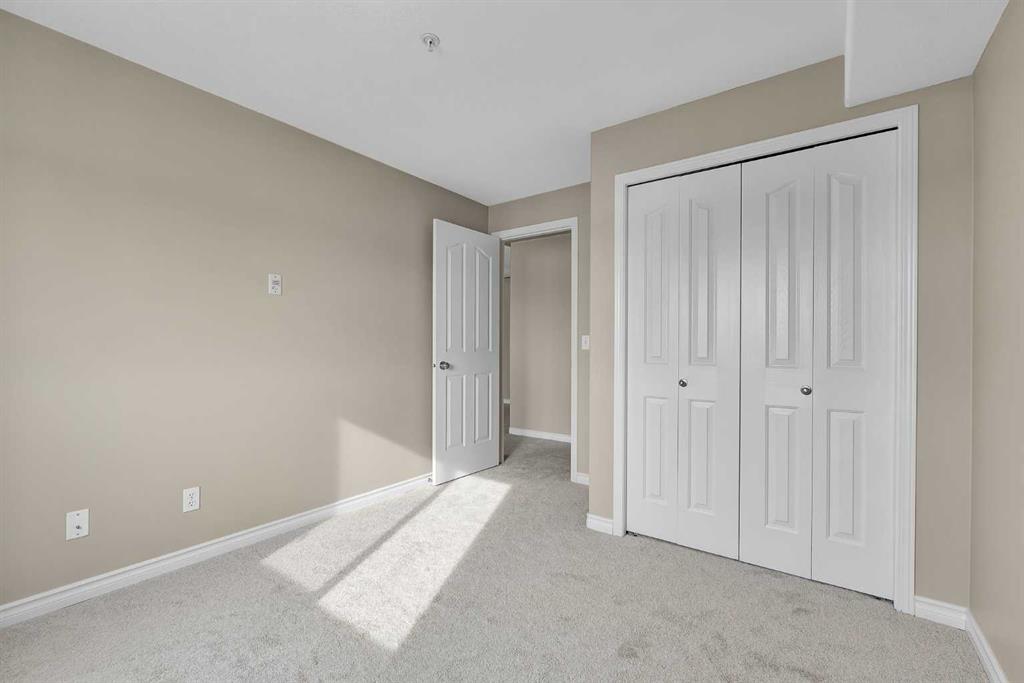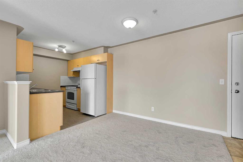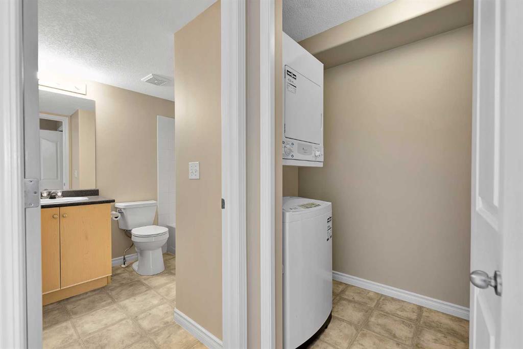 Inside, you’ll appreciate the fresh updates throughout. The walls have been freshly painted and feature chamfered edges designed to help prevent everyday wear and tear. Brand new carpet adds warmth to the living areas, while the kitchen showcases brand new flooring for a clean, modern touch. This home is truly clean and move-in ready. The open plan layout creates a functional and inviting living space, ideal for both relaxing and entertaining. The kitchen is equipped with a hood fan and dishwasher, and flows seamlessly into the main living area. Patio doors in the living room lead to a south-facing covered balcony, perfect for enjoying sunny afternoons while overlooking the green space. A dedicated laundry room with washer and dryer adds everyday convenience and provides addtional storage. The titled parking stall is located close to the building entry, making coming and going simple and stress-free. * Bridleview Pointe is a pet friendly and well maintained condominium featuring a central green space. This unit offers low running costs with a monthly condo fee of $360.45 that covers all utilties including electricity. *