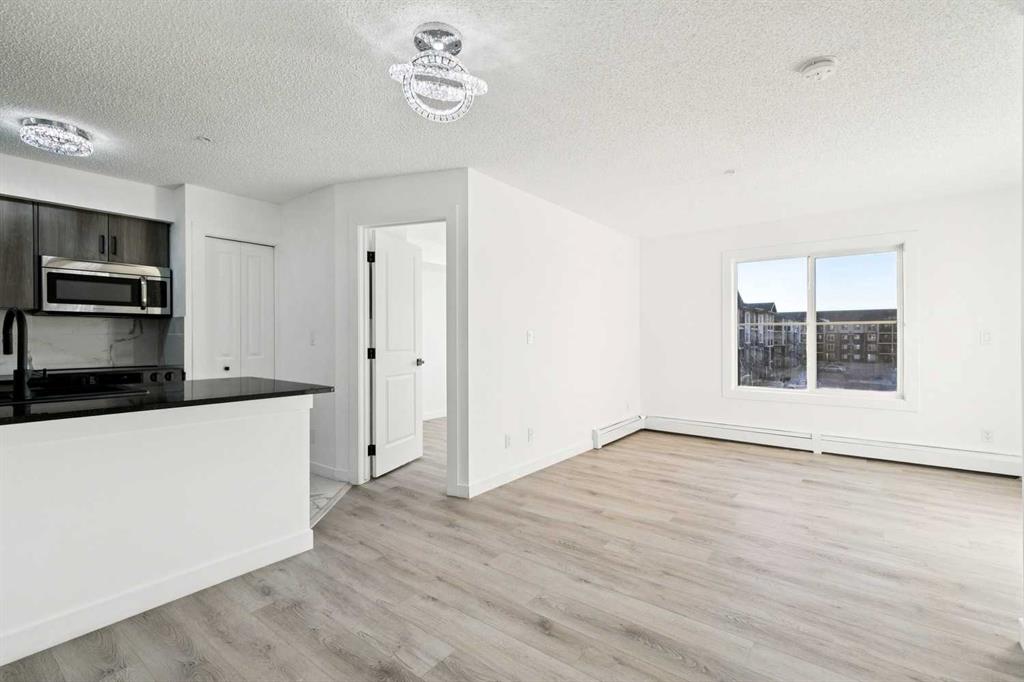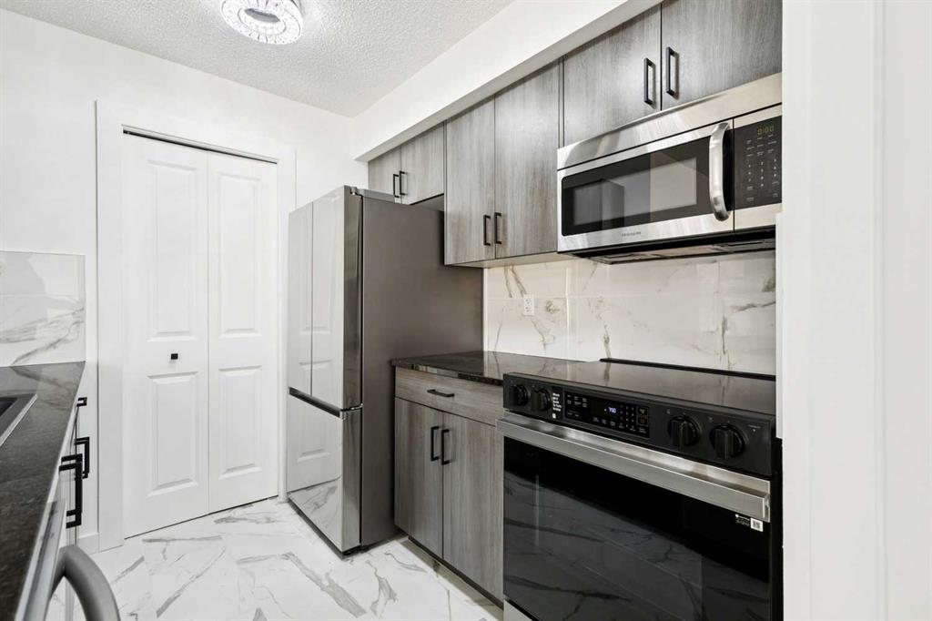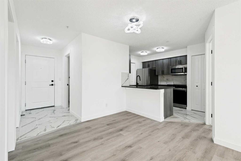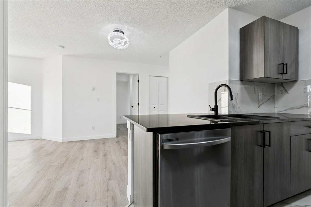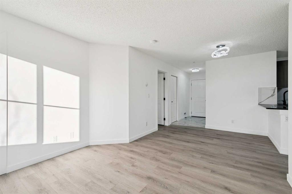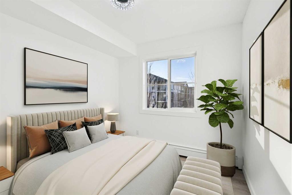 Modern, move-in ready living in the heart of Legacy. This fully updated 2-bedroom, 2-bathroom condo sits on the third floor with a west-facing exposure that brings in beautiful afternoon light. The open-concept design blends the living and dining areas seamlessly, offering a functional layout that works just as well for everyday living as it does for entertaining. A breakfast bar defines the kitchen space, while large windows throughout enhance the bright, airy atmosphere. Thoughtful upgrades include granite countertops, updated kitchen cabinetry, stainless steel appliances, fresh paint, and luxury vinyl plank flooring, delivering a clean, modern finish throughout. The primary bedroom features a walk-through closet and private 4-piece ensuite, while the second bedroom and full bathroom provide flexibility for guests, a home office, or shared living. In-suite laundry with full-size machines and extra storage add to the home’s practicality. Step outside to the spacious covered balcony, ideal for unwinding or hosting friends. This unit also includes a titled underground parking stall in a heated parkade, along with secure bicycle storage. Conveniently located near shopping, dining, parks, pathways, and the South Health Campus, with easy access to Macleod Trail, Stoney Trail, and Deerfoot Trail. Public transit is just steps away, making this a fantastic option for first-time buyers, downsizers, or investors looking for a stylish, low-maintenance home in a well-connected community.