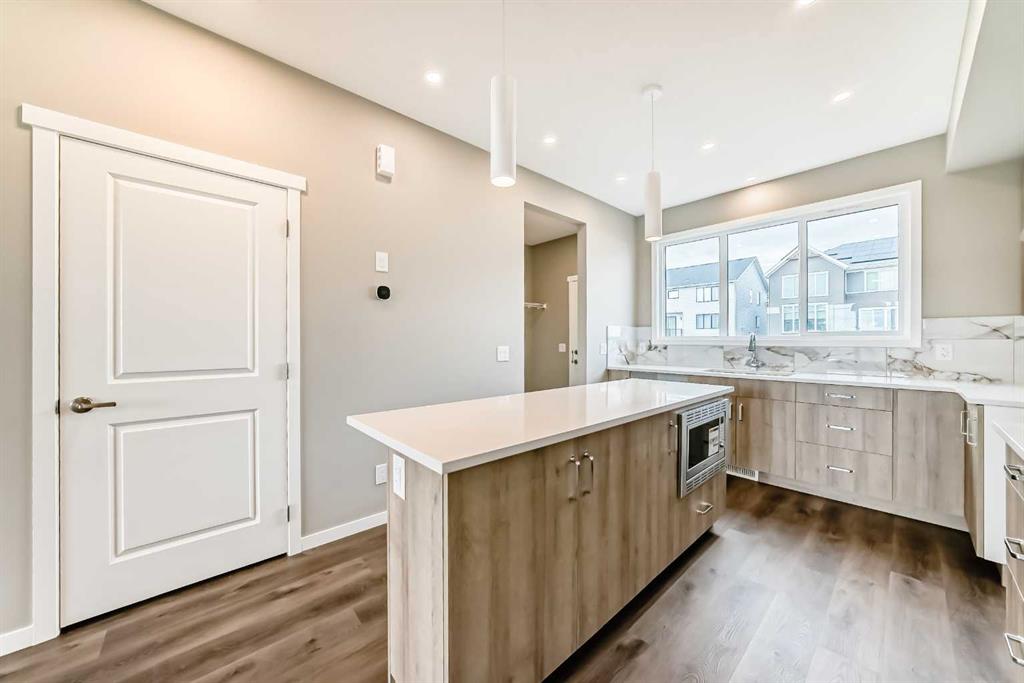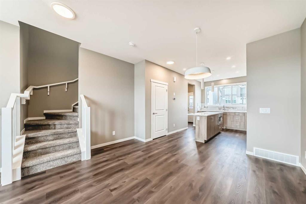 Welcome to the Zane by Hopewell Residential, a thoughtfully designed home that has become a favourite for its open-concept layout, functional use of space, and flexible bedroom design. Offering 1,260 sq. ft. of well-planned living space, this home blends comfort, style, and practicality in a way that suits both everyday life and special moments with family and friends. The main floor feels bright, warm, and welcoming, with an open-concept design that creates an easy sense of flow from one space to the next. At the front of the home, the lifestyle room offers a comfortable place to unwind or gather, while the central dining area helps connect the layout beautifully. At the rear, the kitchen serves as the heart of the home, featuring light wood grain cabinetry, generous storage, ample prep space, and a stylish backsplash with warm brown veining that adds softness and character to the space. The result is a kitchen that feels both modern and inviting — equally well suited to busy weekday routines and relaxed evenings of entertaining. A rear entry, added storage, and a discreetly placed 2-piece bathroom complete the main level with everyday functionality in mind. Upstairs, the thoughtful layout continues with a private primary bedroom at the front of the home, complete with a walk-in closet and its own 4-piece ensuite. Two additional bedrooms are positioned at the back, offering flexibility for children, guests, a home office, or creative space. A full 4-piece main bath rounds out the upper level and reinforces the home’s smart, balanced design. Downstairs, the basement adds long-term versatility with a separate entrance and 9’ foundation height, creating exciting possibilities for the future, whether that means additional living space, room for extended family, or potential for a future basement suite(subject to approval and permitting by the city/municipality). Located in the award-winning lake community of Mahogany, this home offers more than just beautiful interior living, it offers an exceptional lifestyle. Residents enjoy access to Calgary’s largest freshwater lake, two private beaches, the residents-only Beach Club, parks, playgrounds, scenic wetlands, and more than 22 kilometres of pathways. From sunny summer days spent at the beach or on the water to winter afternoons skating and enjoying the outdoors, Mahogany is a community designed around connection, recreation, and year-round enjoyment. Everyday convenience is close at hand as well, with shops, restaurants, cafés, groceries, and services nearby at Mahogany Village Market and Mahogany Village Commons, all helping make this one of Calgary’s most sought-after places to call home.