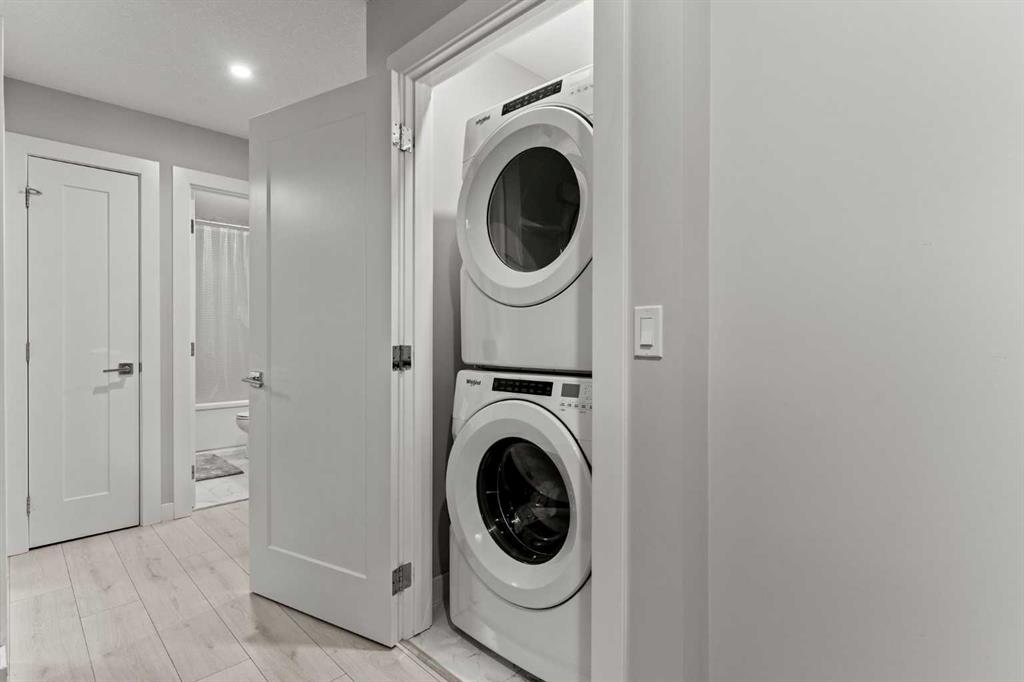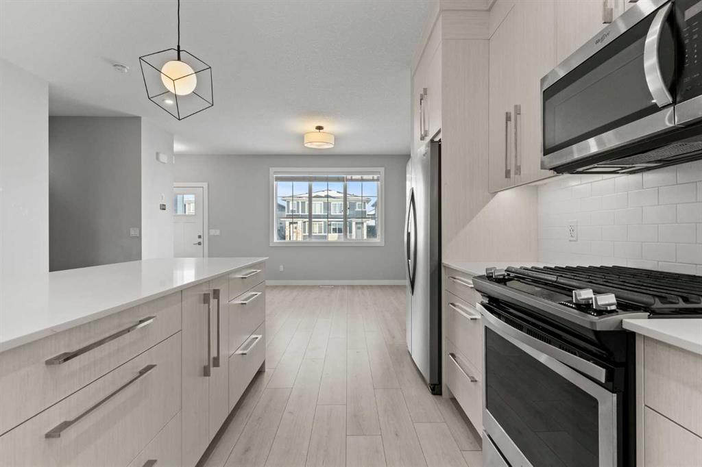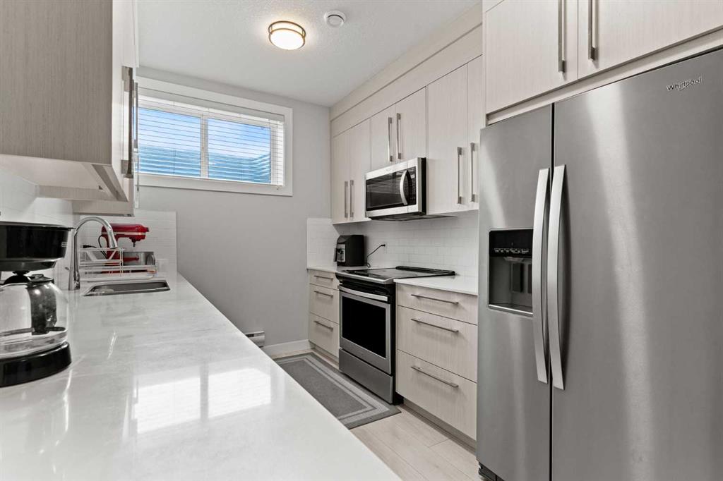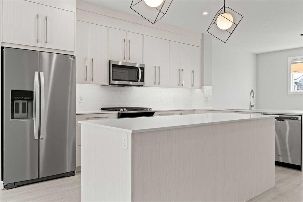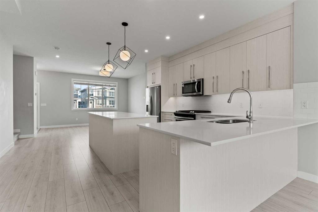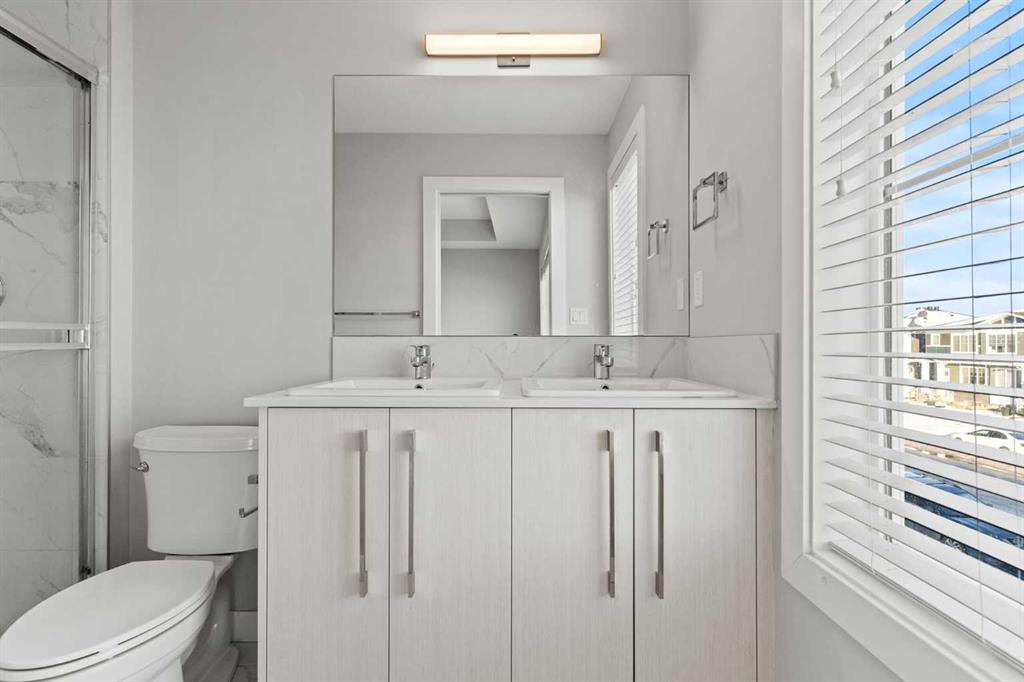 Welcome to this beautifully designed half-duplex with a legal secondary suite, perfectly situated in the growing northeast community of Cornerstone. The main level offers an inviting open-concept layout with a bright living area, dedicated dining space, and a modern kitchen complete with a central island, quartz countertops, stainless steel appliances, a gas range, and a pantry — ideal for everyday living and effortless entertaining. The upper level features three well-sized bedrooms, including a comfortable primary retreat with a walk-in closet and a 4-piece ensuite with dual sinks. A second full bathroom, convenient upper-floor laundry, and a versatile bonus area provide functionality for a home office, playroom, or additional lounge space. The legal one-bedroom basement suite includes its own kitchen, living room, 4-piece bathroom, and in-suite laundry, and is currently tenant-occupied, offering an excellent option for added rental income or a strong investment opportunity. A double detached garage adds everyday convenience, and the location offers quick access to Stoney Trail, Country Hills Blvd, shopping, parks, and schools. A fantastic opportunity for both homeowners and investors in one of Calgary’s fastest-growing communities.