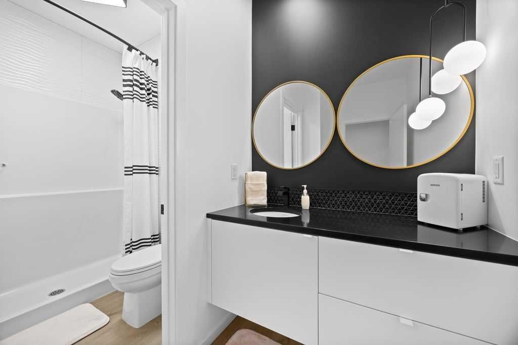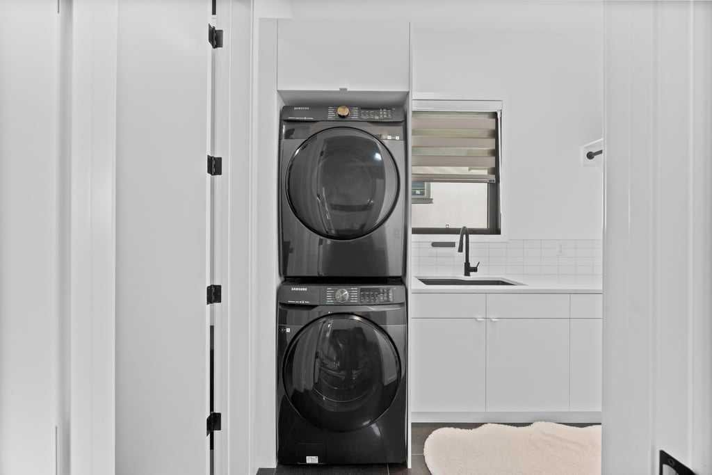 Warm engineered hardwood floors, designer lighting, and a striking custom fireplace in the great room add depth and character to every space. The lower level continues to impress with three large bedrooms, two full bathrooms, a second washer and dryer, and plenty of room to relax or entertain.