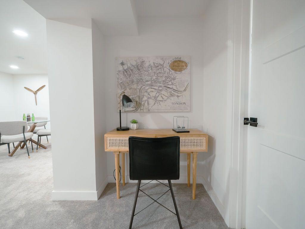 Descend to the fully finished basement to discover an expansive family room, perfect for entertaining or relaxing. This level, also fully renovated, houses a stylish laundry room, a full bathroom with a tiled glass shower, and two additional generously sized bedrooms. The layout here offers excellent potential to create an in-law suite or a separate second unit by adding a kitchen, A secondary suite would be subject to approval and permitting by the city/ municipality.