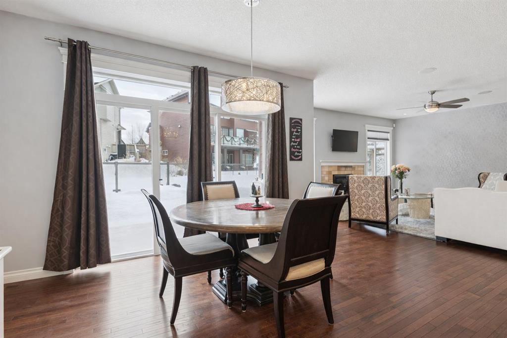 The main level also offers a spacious family room with a stone-surround gas fireplace, a semi-formal dining room with French doors, a large front foyer, and durable tile flooring that carries through to the garage entry. Enjoy Sonos built-in audio on every level and a total of three fireplaces throughout the home.