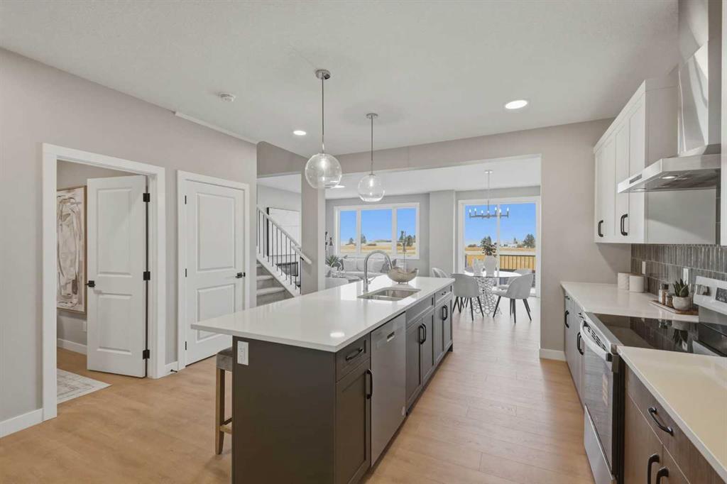 **2,423 SQ FT | 5-BED | 3-BATH | MAIN FLOOR BED & FULL BATH | SPICE KITCHEN | HARDIE BOARD SIDING | REAR DECK | FRONT LANDSCAPING | BUILDER WARRANTY** This Crystal Creek home delivers more style and space where it matters in the growing community of Belvedere. The open concept layout is anchored by a large gourmet kitchen with an oversized island, extensive cabinetry, a walk in pantry and dedicated spice kitchen that keeps prep separate from entertaining. The main level bedroom adds flexibility for guests, extended family or a private office. Upstairs, a central bonus room separates the bedrooms, while the spacious primary suite features a deluxe ensuite and generous walk in closet. Three additional bedrooms, a main bath and upper level laundry with washer and dryer complete the upper level. A side entrance and 9 foot basement ceilings offer strong potential for a future legal basement suite, subject to city approval and permitting. Backing onto open space with no rear neighbours, this home includes a rear deck, front landscaping and durable Hardie Board siding rarely found in the community. Located in southeast Calgary’s growing Belvedere community with quick access to Stoney Trail and East Hills amenities, and protected by builder warranty, this is a well designed home with flexibility built in. Contact us to arrange your private showing