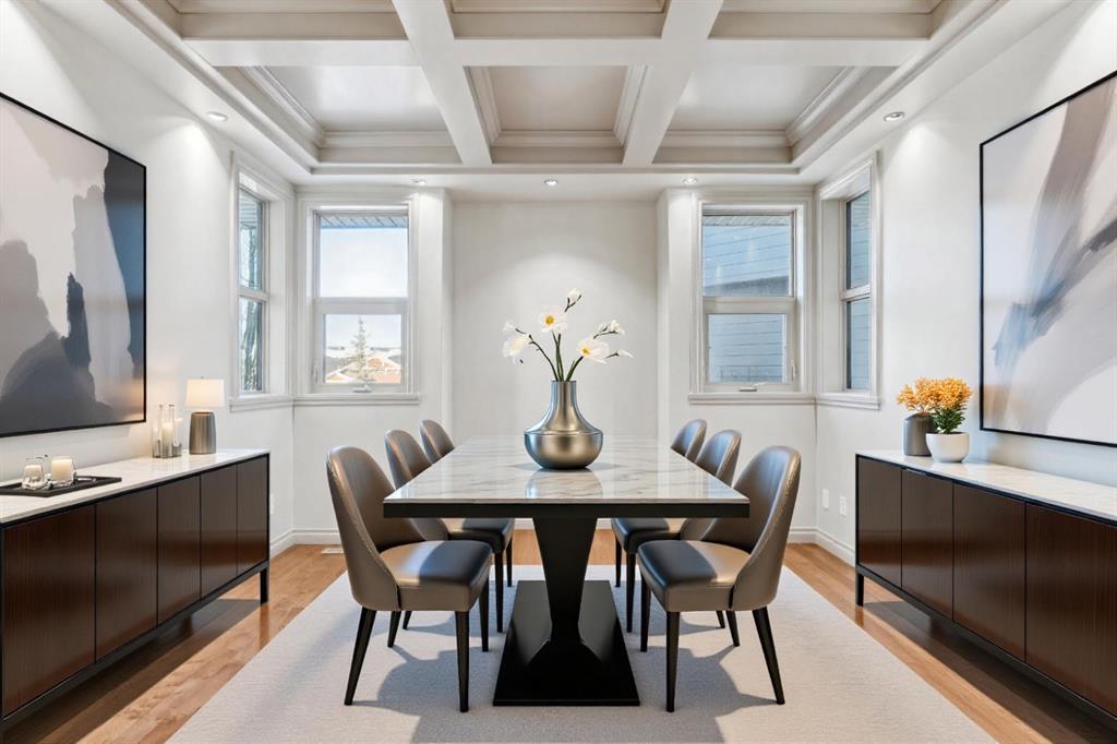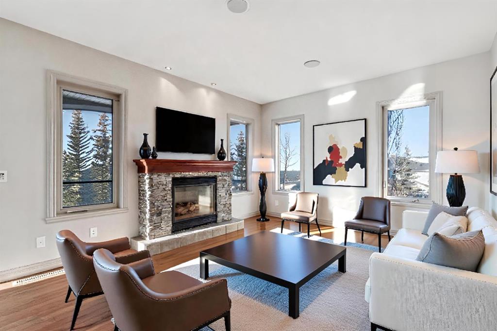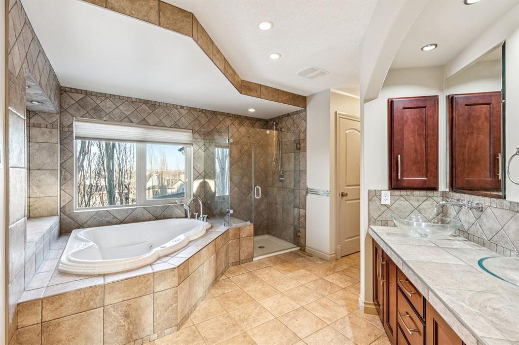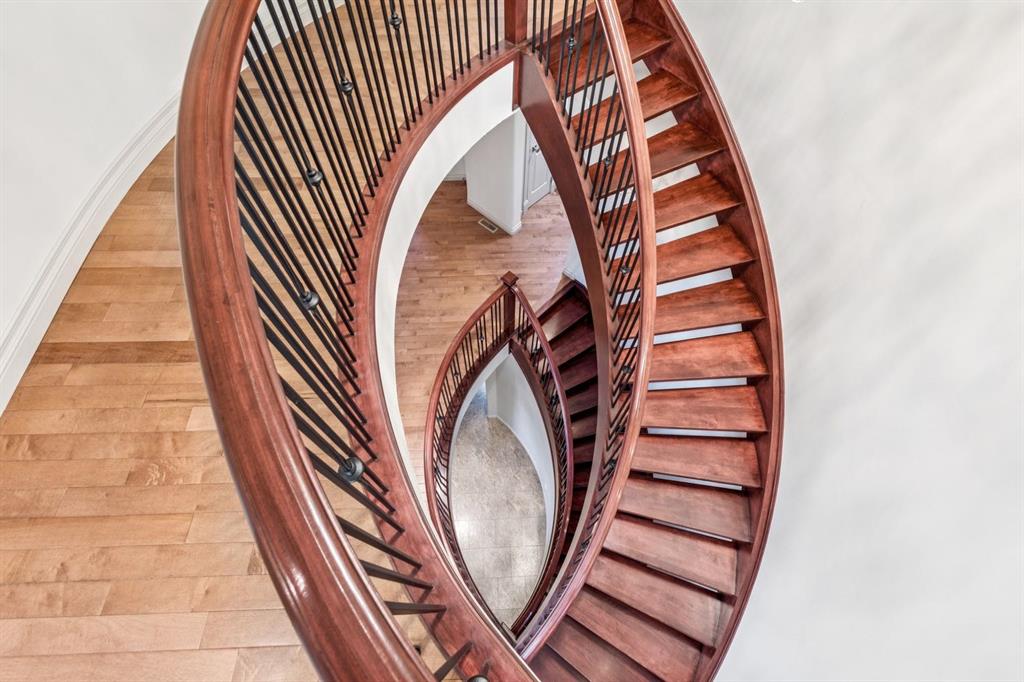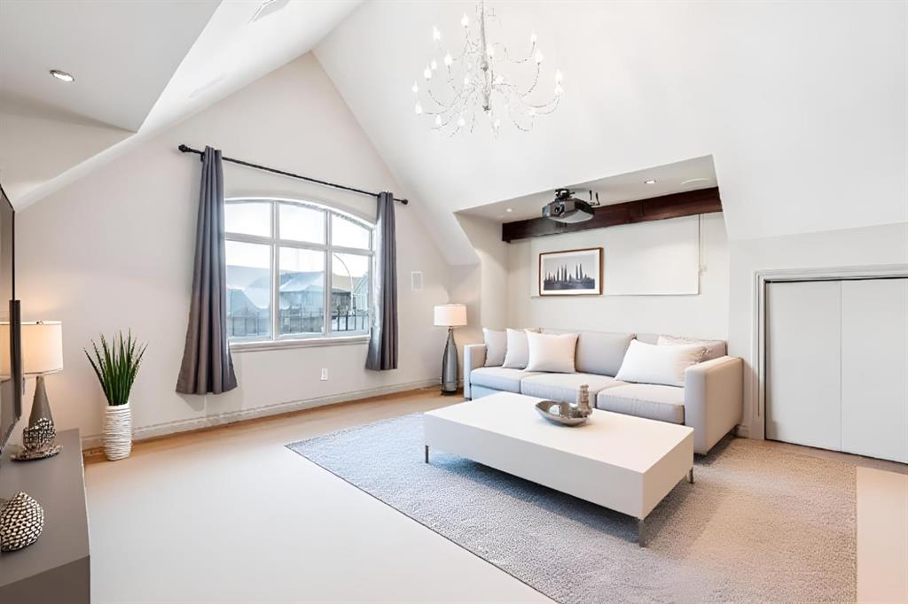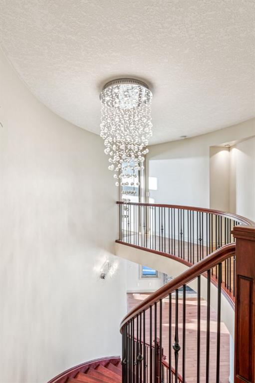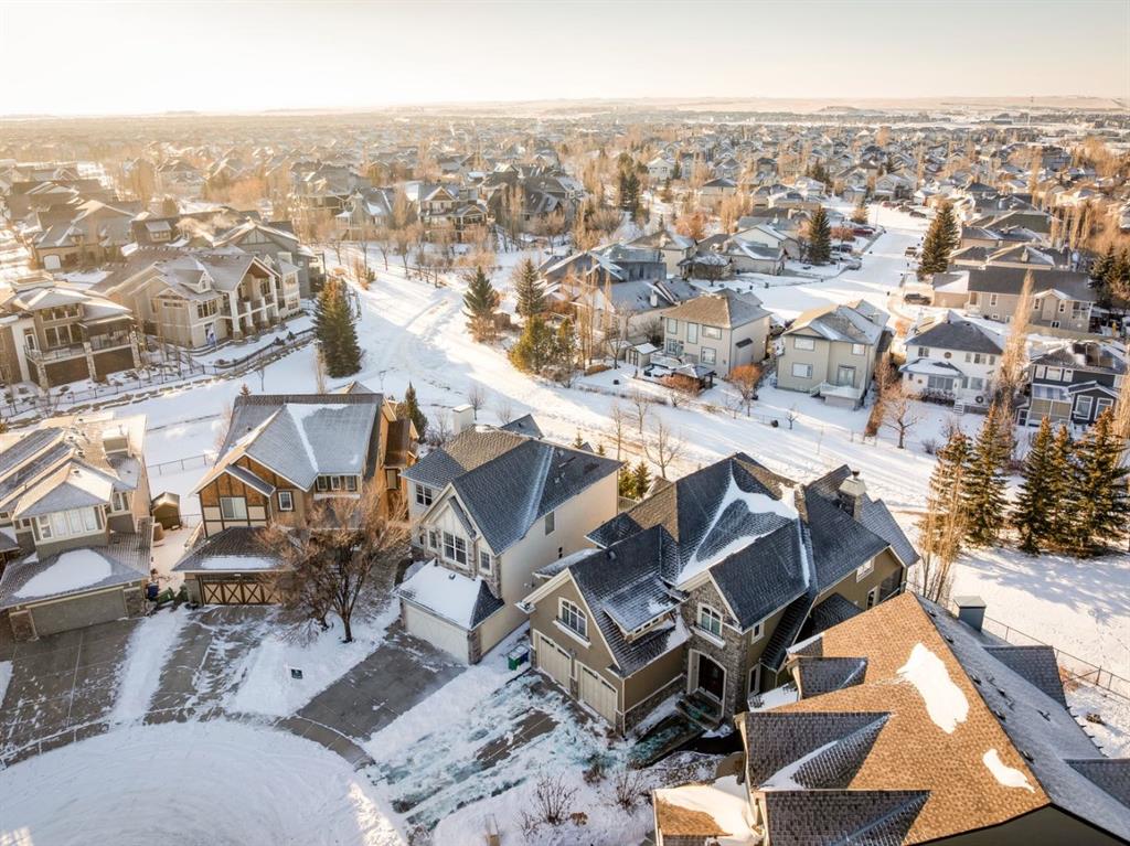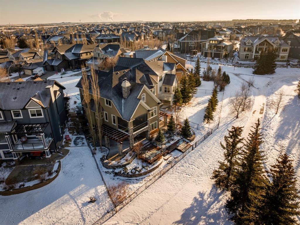Welcome to an extraordinary custom-built, top-of-the-line geothermal estate tucked away on a quiet cul-de-sac in Airdrie’s most prestigious community—Coopers Crossing. Backing west onto green space, parks, and walking paths, this fully finished walkout home offers breathtaking sunsets, ultimate privacy, and a lifestyle few properties can match. Designed with no expense spared, this 5-bedroom, 3.5-bathroom residence blends striking architecture with leading-edge green technology, including geothermal heating & cooling, ICF foundation, tankless hot water on demand, in-floor radiant heating, and a heated oversized garage with hot & cold taps. Freshly painted in 2025, the home showcases timeless elegance with modern efficiency. Inside, you are greeted by soaring 9’ ceilings, crown molding, coffered details, extensive wall paneling, and a custom curved staircase that gracefully winds through all three levels. Rich cherry wood cabinetry, engineered hardwood, built-ins throughout, and upgraded lighting reflect exceptional craftsmanship and attention to detail. The chef’s kitchen is truly impressive, featuring high-end stainless appliances, a built-in Electrolux fridge/freezer, gas cooktop, prep sink, and an incredible Butler’s pantry with coffee station offering endless storage. Entertain effortlessly in the formal dining room or relax in the sun-filled living areas framed by expansive windows. Upstairs, the vaulted bonus room is a showstopper—complete with a full home theatre setup (projector, screen, amplifier, and subwoofer included). The primary retreat is a private sanctuary with a spa-like en suite, walk-in closet, and a separate reading/relaxation den. The fully developed walkout basement adds a home gym/craft room, additional bedrooms, bathroom, and exceptional storage. Step outside to enjoy multiple lower aggregate patios, two-tier decks, pergolas, a wood-burning exterior fireplace, and stunning professional landscaping complete with waterfall feature, stonework, underground sprinklers, and five cultured-stone retaining walls with custom caps. Additional highlights include screened-in upper balcony with gas line, exposed aggregate driveway with stamped border, central vacuum, in-ceiling speaker system, water softener, acrylic stucco exterior, and unbelievable curb appeal that feels straight out of a castle. Located in a family-friendly executive enclave, within walking distance to schools, parks, and amenities, and offering easy access out of town—this is more than a home; it’s a dream property and a rare opportunity to own one of Coopers Crossing’s finest residences. Book your private tour today and great ready to be blown away with this home’s impressive features!