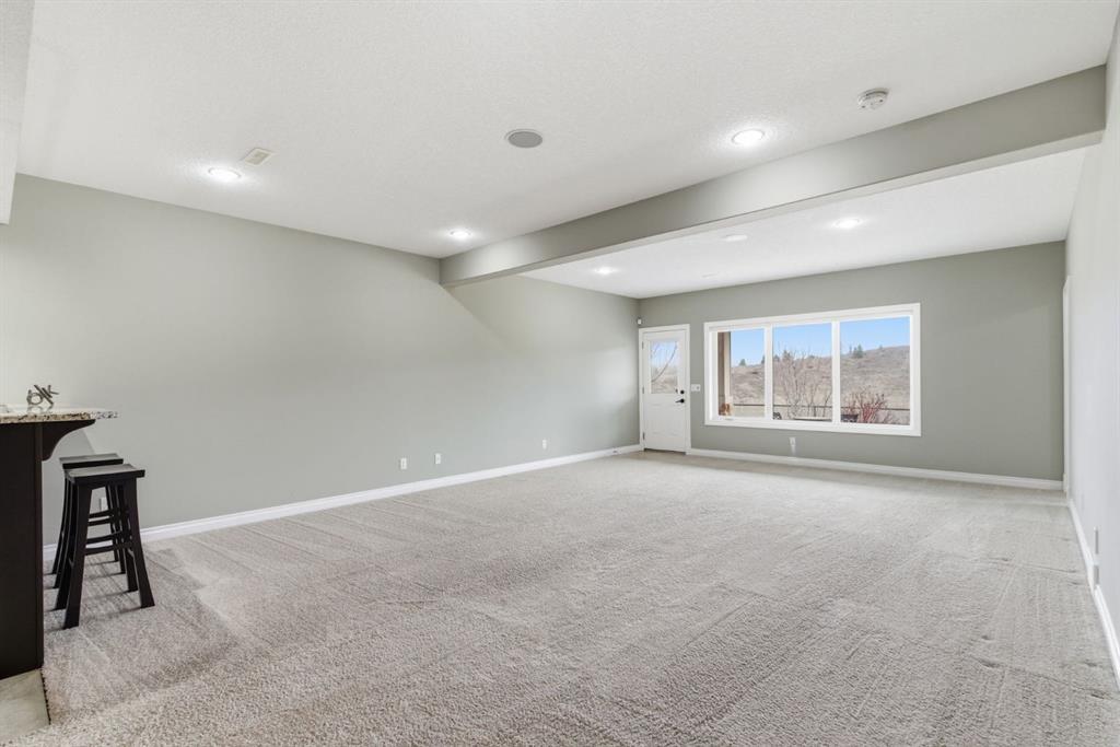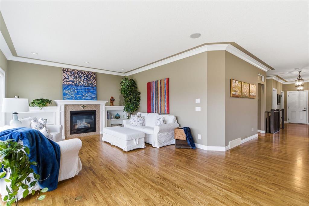 Welcome to 135 Jumping Pound Terrace. Your invited to our open house this Saturday April 25th from 11 am to 2 PM to explore this beautiful Walk-out Bungalow which backs onto the Jumping Pound Ridge with the Creek in the Valley below. Imagine no neighbors behind. Wake up to the Sunny back deck with incredible views of the Valley and Cochrane beyond. This home features 2,795 sq ft of living space with and office near the front entrance. The Gourmet kitchen is a must see with Exquisite white tall cabinets including glass front uppers, custom hood fan, gas cook top, wall oven, lots of drawers, massive flat granite island, and corner pantry. The dining room and living room over look the large deck and valley views with the living room featuring the gas fireplace and wall units built in. The crown molding and cut painted ceilings and gleaming hardwood floors showcase the attention to detail in this property. The Primary bedroom is on the main floor and has the large ensuite with a tower cabinet between the two sinks, large soaker tub, and well appointed tile and glass shower. large walk in closet is a plus. The large walk in closet with counter and sink is located so plumbing and wiring could be brought up to install laundry on the main level. The lower level is fully finished with two more bedroom, a large family room and full wet bar with granite counters and wine cooler. The infloor heat makes this a cozy basement all year long. The Laundry room is large and also has a full refrigerator and freezer. Step out of the walk out basement to the large full length patio featuring river rock clad pillars, Views of the Valley and a walking path up the side of the house to the garage. Check out the triple car heated garage. Central Air Conditioning, Ceiling Speakers, Powered Blinds in the living room and lower family room. Build by Kingsmith homes. Call to book a personal viewing before its gone.