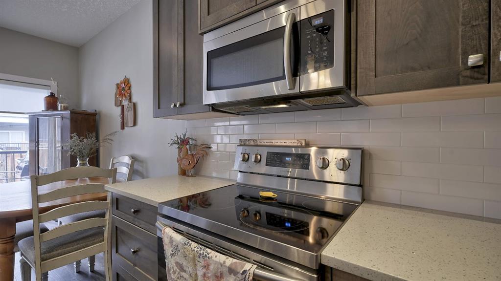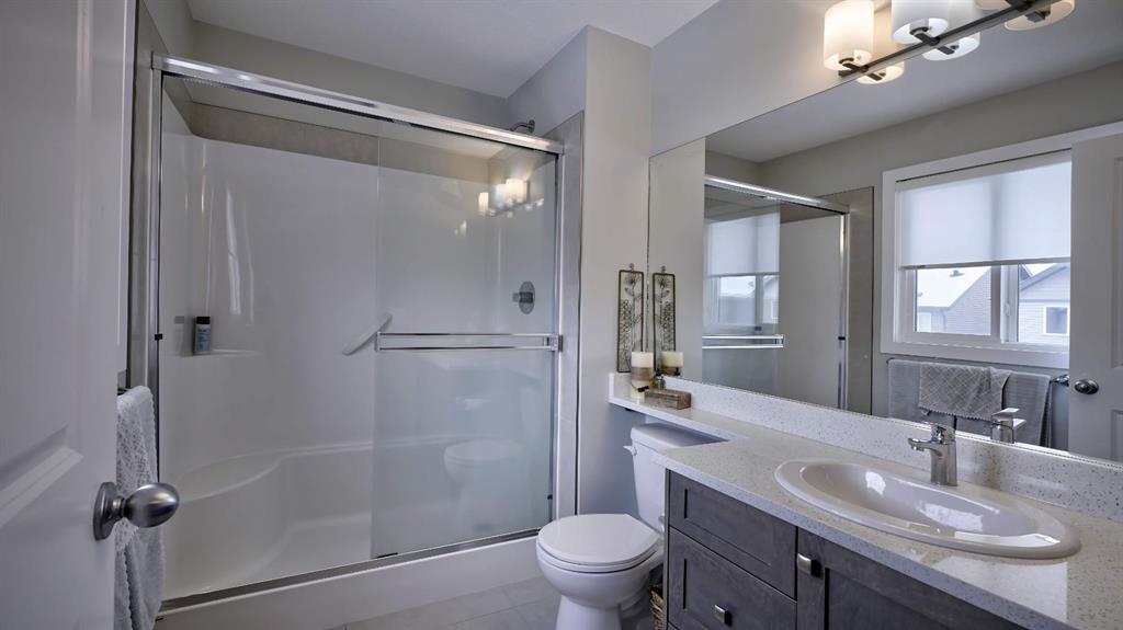 This home truly shows pride of ownership! The charming front porch is perfect for chatting with neighbors and enjoying the neighborhood. As you step inside, you’ll find a convenient half bath just off the entry. The spacious living room features a large window that floods the space with natural light, creating a warm and inviting atmosphere. The open-concept layout makes it easy for the person in the kitchen to stay part of the conversation in the living room. There’s plenty of room for a large dining table, perfect for entertaining friends. The kitchen boasts expansive Quartz countertops, ceiling-height cabinets, and modern lighting fixtures. A sliding glass door leads to a generously sized deck with a privacy wall and a gas line for your BBQ—ideal for outdoor gatherings. Upstairs boasts 2 spare bedrooms, plus Primary Bedroom. The laundry area is conveniently located between the upper bedrooms. The master suite offers ample space to move around the bed and includes a 3-piece ensuite with a convenient stand-up shower.