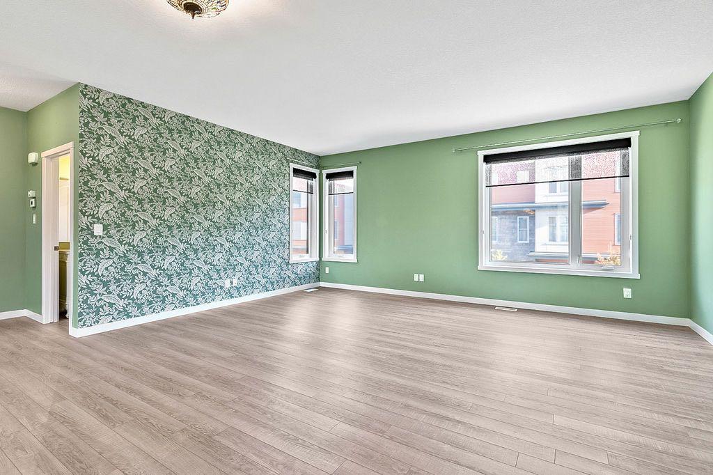 Discover this stunning 200019/2 duplex townhome in the desirable Fish Creek Shawnee Park neighborhood. This two-story, End-unit residence features an open-concept design with luxury vinyl plank flooring throughout all levels, creating a sleek and modern feel. The bright and spacious layout is perfect for entertaining, with a convenient kitchen island, central dining space, and adjoining living area. Step outside to a large balcony offering terrific views of green space and a playground — ideal for outdoor gatherings. The upper level boasts a three-bedroom layout, including a spacious master bedroom with a walk-in closet and a private three-piece en suite. A convenient laundry area is also located on this level. The modern kitchen is equipped with quartz countertops and stainless steel appliances, combining style and functionality. Additional highlights include central air conditioning for year-round comfort, and low-maintenance condominium fees that cover snow removal, landscaping, and insurance. The complex is surrounded by established amenities such as schools, Fish Creek Park, and is just a short walk to Fish Creek LRT station, making commuting a breeze. This elegant home offers a perfect balance of comfort, style, and convenience. Don’t miss your chance to make it yours!