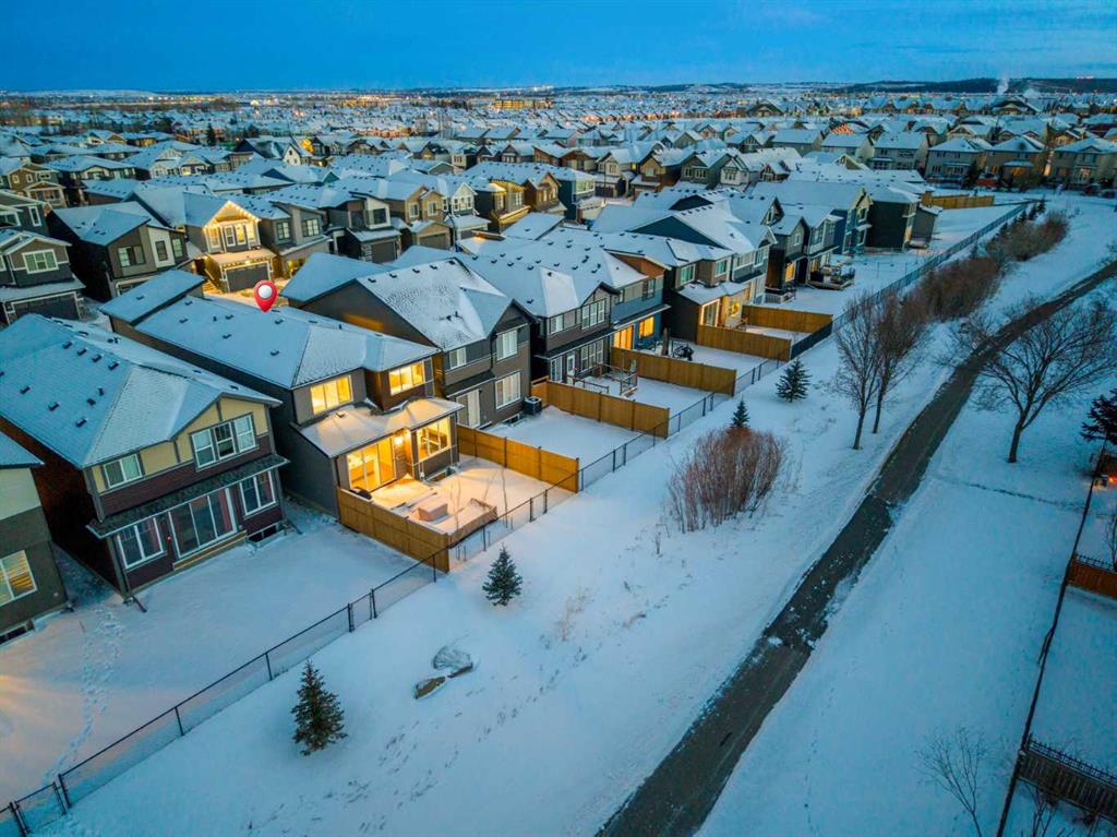 Welcome to 135 Silver Spruce Grove, a show-home worthy estate nestled within the prestigious enclave of homes in Silver Spruce, Silverado. This residence was built by the highly regarded Brookfield Homes and showcases the award winning ‘Columbia’ floor plan, known for its thoughtful design. With opulent finishes, premium selections and a palette that compliments every era, this residence transcends time and trends. You will love the striking, modern exterior, and the desirable location, west-backing unto a serene pathway and greenspace! The impressive main features 9’ ceilings and luxury vinyl plank flooring coloured in ‘Willow’, illuminated by the plethora of natural light beaming through the expansive triple-pane-windows on this floorplan. The chef-inspired kitchen is extraordinary, with a remarkable island as the showpiece! This designer kitchen is curated with contrasting two-tone cabinetry in Ivory and Natural Halifax Oak, offering brilliant dimension. This culinary retreat is framed with stunning full height Oak Shaker Cabinetry, and is enhanced with lux tile, gorgeous quartz counters, alongside the state-of-the-art appliance suite. The notable family room features a gas fireplace as its centrepiece and for memorable dinners, an open-concept dining area awaits. A rare feature of this floorplan is the impressive size of the main living areas, including the addition of a den located at the back of the residence. The den overlooks your backyard oasis and is the perfect in-home office or children’s area. Ascend upstairs, and into your lavish primary suite featuring a boutique worthy dressing room and a designer five-piece spa. The spa is elevated by a soaker tub, lush shower and dual vanities! The upper has a split wing design, with two spacious bedrooms ensconced on one end of the residence, both with walk-in closets, and one with extravagant vaulted ceilings! The generous bonus room allows for privacy and separation between the primary suite and secondary bedrooms. This level features laundry and another five-piece bath. The lower level awaits your creativity, with desirable 9’ ceilings and a separate entrance – for future suite development (with city approval) as an ideal space for your kids or in-laws! This residence captures the allure of a brand-new build with its pristine like-new condition, while presenting the advantages of having remaining warranty, an ideal possession timeline, and the ability to save on the gst! Plus, the value of having extensive upgrades on a premium lot, along with motorized Hunter Douglas blinds, air-conditioning, pax wardrobe systems and professionally curated landscaping – with lush greenspace, a tiered deck in vinyl and stone, a gorgeous fence and aspens for privacy. Silver Spruce offers modern living in an established community, with parks, schools and amenities just minutes away including Spruce Meadows, Fish Creek, and multiple world class golf courses! This estate is waiting for a connoisseur of fine living to call it home!