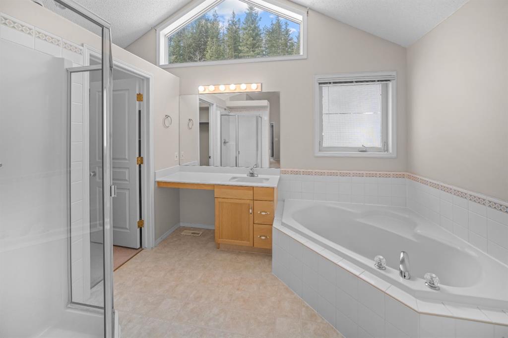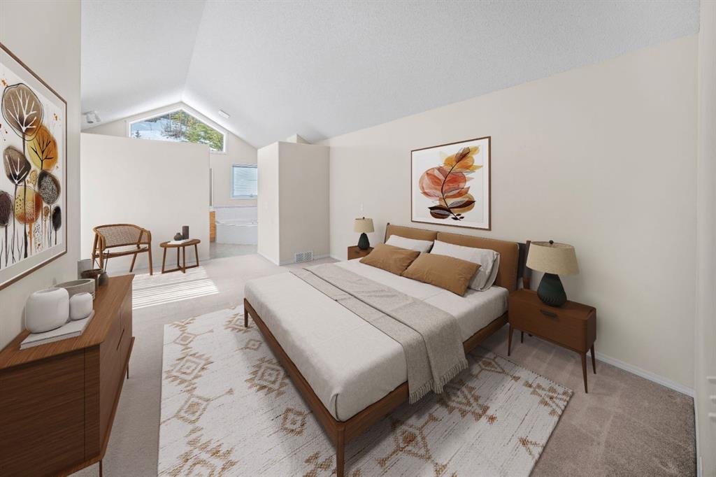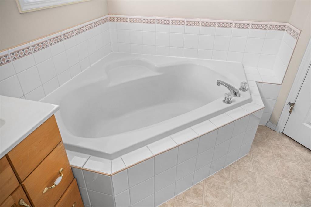 The spacious primary bedroom offers a peaceful retreat, complete with a private ensuite featuring a relaxing soaker tub. Two additional bedrooms and bathrooms provide ample space for family, guests, or a home office.