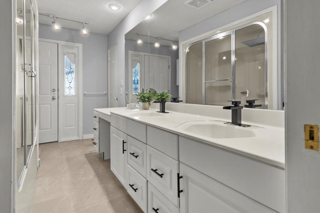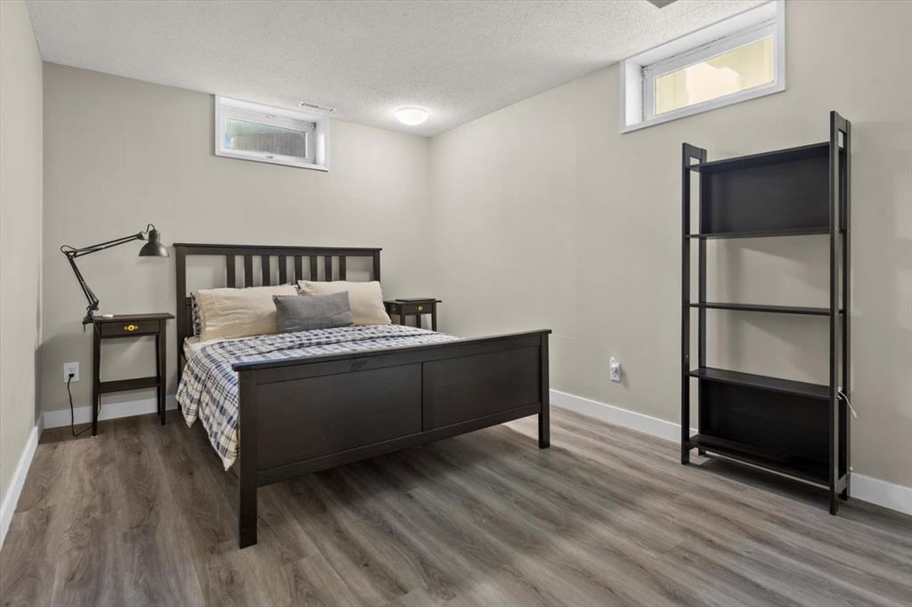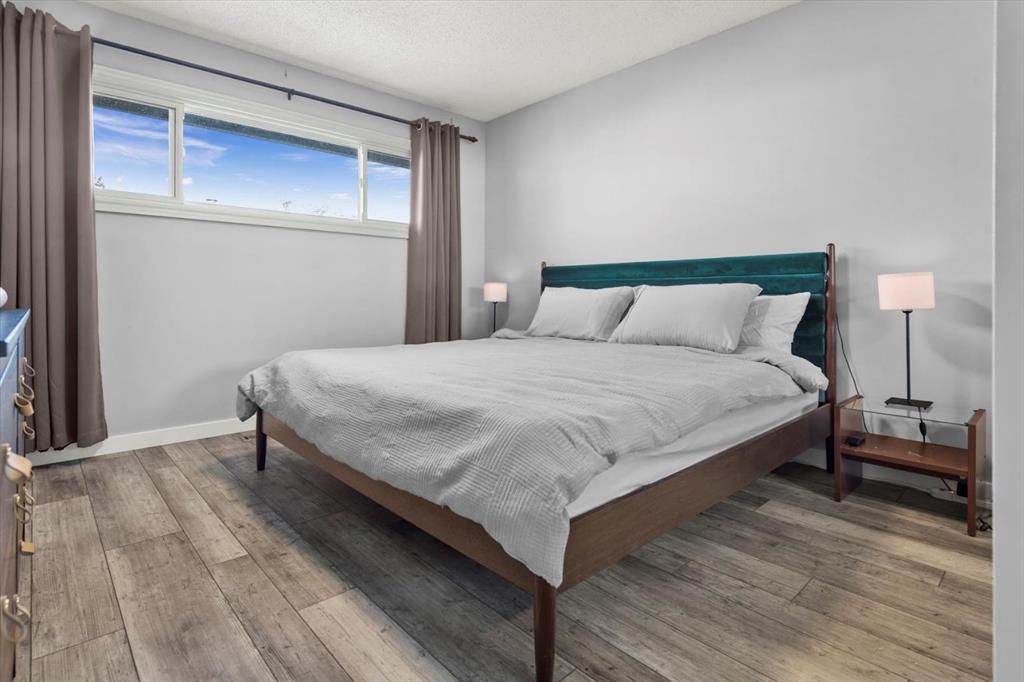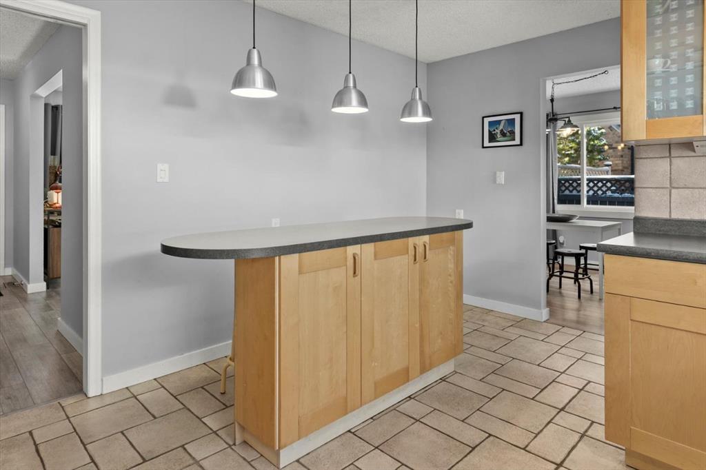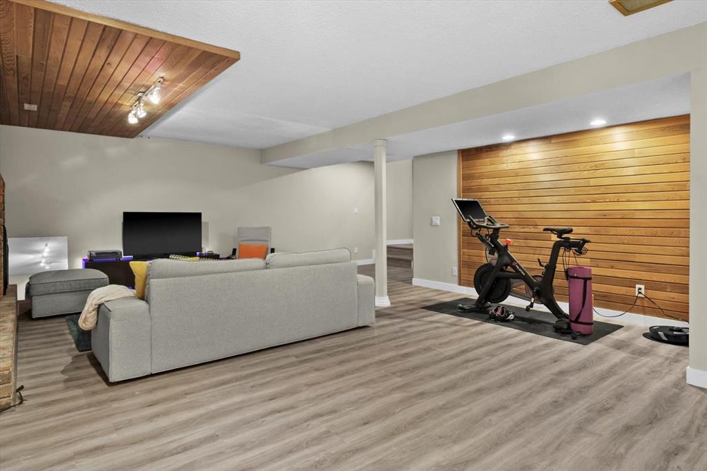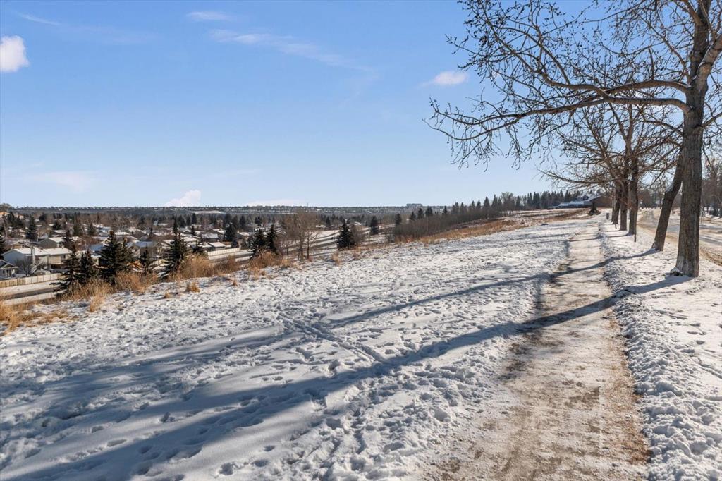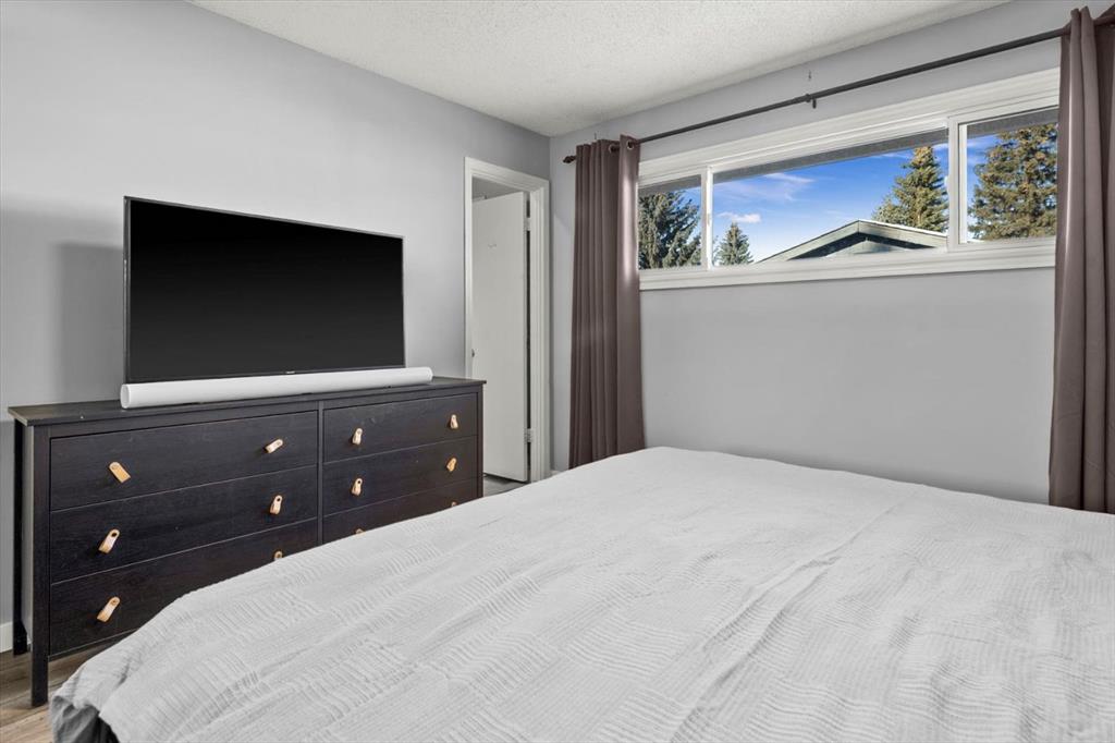 Are you looking to live close to Fish Creek Park? What about in a spacious bungalow with a mature yard complete with an oversized double detached garage, expansive deck and hot tub? Welcome home to one of the best streets in Parkland – ‘Pig Street’, where neighbours gather each year for a Pig Roast and community building activities. Entering the home, you’ll note the airy living room stretches out and is centered by a statement wood fireplace with gorgeous brick hearth and wood mantle. The attached dining room sits in front of a large picture window and has room for a large family dining table, and hutch or coffee bar. The kitchen sits at the rear of the home and overlooks the deck and yard. There is ample storage, an eat up island and a gas range. Down the hall, you’ll find the primary suite with a cheater ensuite. This washroom has storage a plenty, dual sinks and a makeup vanity. A unique feature is connecting to the deck area for direct access to the hot tub; they are hooks for your tub robes and never track wet through the house again! This wing is completed with two additional bedrooms. Headed towards lower level, the rear entrance leads out towards your double detached garage and into the yard. Downstairs, you will find a large rec room with space for a home gym area, gaming center or billiards, and a second living room with wood accents and brick fireplace with a gas insert. The basement also features updated laundry, a recently renovated 3-piece bathroom and a fourth bedroom. There is also a storage room/pantry space and an office/den, and updated flooring. Outside this yard has plenty of room for activities and is the ultimate summer hosting spot. Mature landscaping and an apple tree, plus a 2-tier deck surrounding the hot tub with a gazebo and room for all the BBQs you desire! This home has had numerous updates over the years and include main floor windows, the furnace and hot water tank, and shingles. The alley behind this home offers direct access to the walking trails of Fish Creek Park and stunning mountain views. Great for running, walking the dog and just enjoying the neighbourhood. Homes in Parkland are in short supply, book a private showing with your trusted agent before She Gon’!