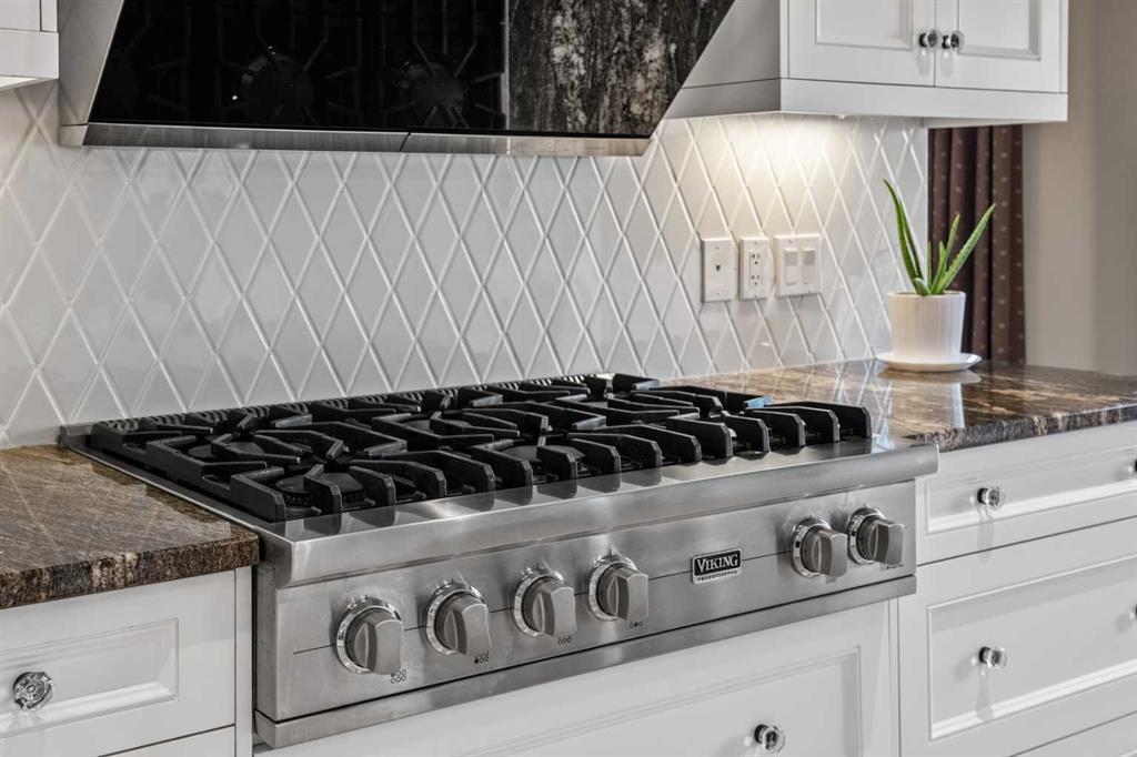 Welcome to 136 Patrick View SW—an executive walkout residence offering over 4,400 sq ft of refined living space, perched aboveaprotected nature reserve in one of Patterson’s most prestigious enclaves. With 3,119 sq ft across the main and upper levels, plus an additional1,300+sq ft in the fully developed walkout basement, this home delivers luxury, functionality, and lasting value. From the moment you enter, agrandstaircase and sunlit foyer set the tone for timeless sophistication. The main floor flows seamlessly through formal and casual living spaces, withnewlyrefinished hardwood, luxury vinyl plank, and designer lighting. The professionally renovated kitchen features granite counters, a gas cooktop,and abuilt-in appliance wall with microwave above and oven below—anchored by a crystal-lit island and breakfast nook that opens to a topless glassraildeck framing panoramic river valley views. Upstairs, the primary suite is a sanctuary with heated marble floors, a freestanding soaker tub beneathachandelier, and a walk-in closet with custom cabinetry and brass accents. The ensuite also includes a frameless glass shower with rainfallandhandheld heads, and dual vanities with elegant lighting. Three additional bedrooms and a 5-piece bath offer comfort and flexibility for familyorguests. A dedicated home office, a serene wellness room, and an elegant upper hallway with tray ceiling and chandelier add both function andflair.The walkout level is designed for leisure and entertaining, featuring a spacious rec room with fireplace, red-felt pool table, built-in bar withglasscabinetry and mini fridge, media lounge, and a cozy dining nook with bay windows. Additional guest bedrooms and a full bath complete thelowerlevel, while large windows flood the space with natural light. Outside, enjoy a professionally landscaped yard with mature trees, a recessed firepitarea with stone surfacing, a private dog run, and a covered patio beneath the elevated deck. The property backs onto a nature reserve,offeringunobstructed views and exceptional privacy. Aerial perspective reveals the home’s prime location—just minutes from top schools, boutiqueshopping,and downtown Calgary, yet surrounded by greenery and tranquility. Over $35,000 in recent upgrades—including new A/C, hot water tank(2025),washer/dryer, range hood, window treatments, garage painting, and refreshed landscaping—complement earlier renovations to the kitchen,ensuite,and deck. Every detail reflects pride of ownership and professional care. This is elevated living—crafted for those who expect more.