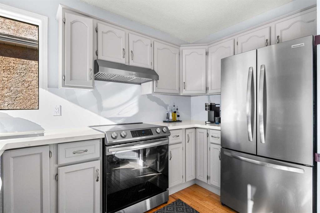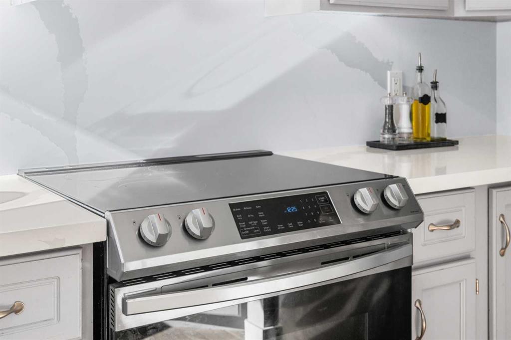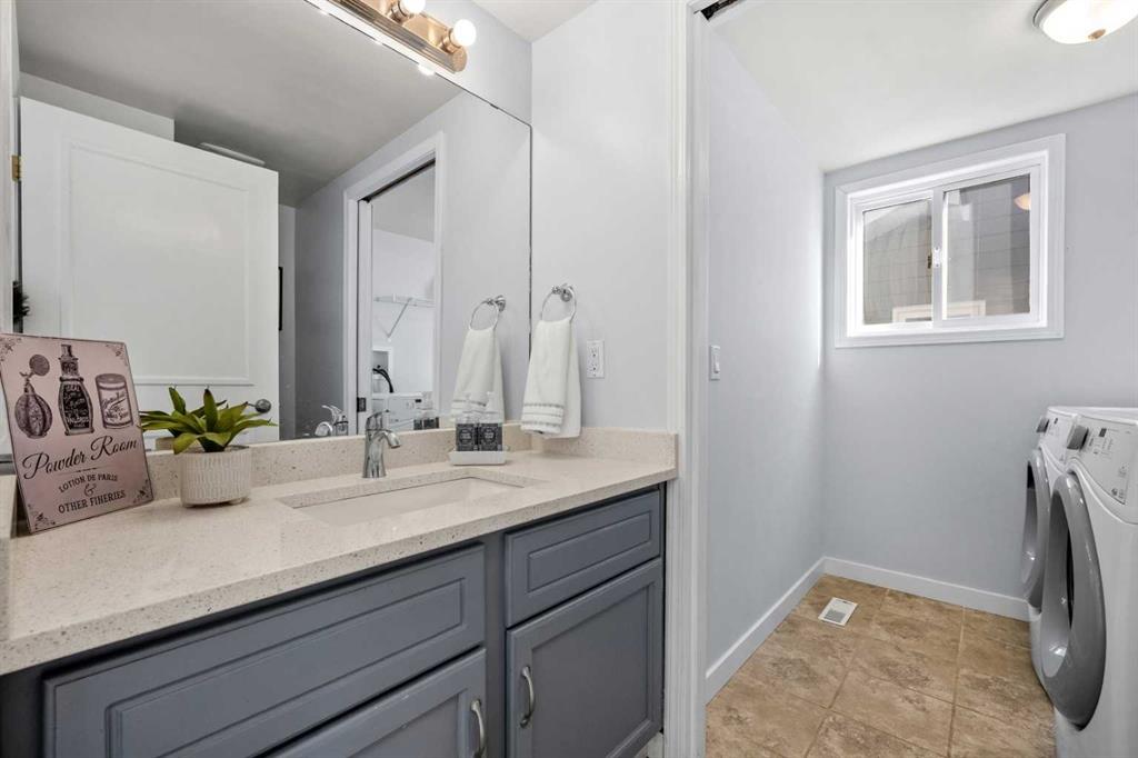 Upstairs, you’ll find brand-new carpet (2025), a charming linen station with a quartz countertop, and three spacious bedrooms. The primary retreat overlooks the sunny backyard and offers dual closets and a beautifully renovated ensuite with quartz counters and a walk-in shower. Two additional bedrooms easily accommodate queen beds and share a fully updated main bath finished in timeless tile and quartz.