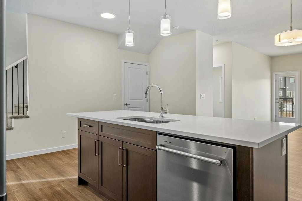 WestCreek Homes SOHO plan showcases a striking stone, vinyl, and Hardie board exterior and features a side entry offering a legal basement suite option. Ideally positioned on a northwest-facing backyard, the property backs directly onto a private community green spaces, complete with an outdoor sitting area, picnic tables, and a community garden. A rear fence and private deck further enhance this exceptional outdoor setting. Inside, the main floor is highlighted by 9’ knockdown ceilings and a thoughtfully designed open-concept layout. A front dual-door coat closet welcomes you into the home, while the double attached garage leads into a family-sized mudroom with a built-in bench and additional storage. Luxury vinyl plank flooring flows throughout the main level, drawing the eye toward the rear views. The chef-inspired kitchen is anchored by a large quartz island and features soft-close cabinetry, an undermount sink, extended-height cabinets, abundant prep space, a walk-in pantry, and premium KitchenAid appliances, including a French door refrigerator, gas cooktop, built-in wall oven, microwave, and a statement standalone hood fan. Adjacent to the kitchen, the central dining area opens into the rear lifestyle room, where a modern linear electric fireplace and a wall of windows frame tranquil green space views. Completing the main level are a convenient broom closet, a 2-piece bathroom, and a versatile flex room ideal for a home office, den, or guest bedroom. Upstairs, open railing and plush carpet lead to a well-designed upper level featuring a central bonus room and a functional laundry room with added upper cabinetry and linen shelving. At the front of the home are two spacious children’s bedrooms, each with swing-door closets, served by a uniquely designed 4-piece bathroom with a separate water closet, separate tub/shower with built-in towel storage, and an open quartz vanity. The rear of the upper level is dedicated to the impressive primary retreat, complete with a generous walk-in closet and a luxurious 5-piece ensuite featuring dual sinks, quartz vanity storage, a deep soaker tub, a standalone shower, and a private water closet. The undeveloped basement, accessed via the side entry, offers a wide-open layout ready to accommodate a future legal suite or additional living space for a growing family. This level is enhanced by 9’ ceilings, on-demand hot water, a high-efficiency furnace, HRV system, drip humidifier, and spray-foam insulated exterior joists. Offering outstanding value in both home and lot, this property delivers exceptional design, flexibility, and a premium community setting. With quick access to community pathways, local amenities and Blue Devil golf course this home is sure to please!