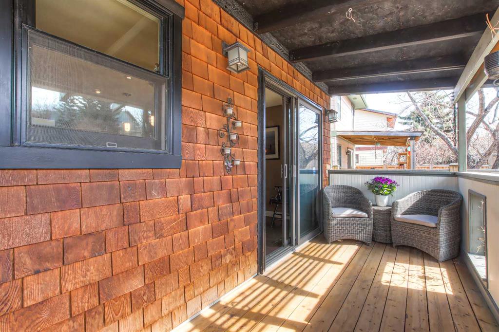 Rear patio doors lead to a west-facing covered deck, perfect for enjoying sunny afternoons and evenings.