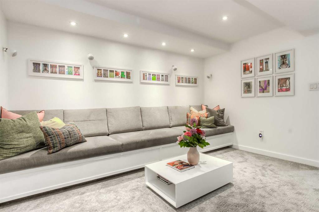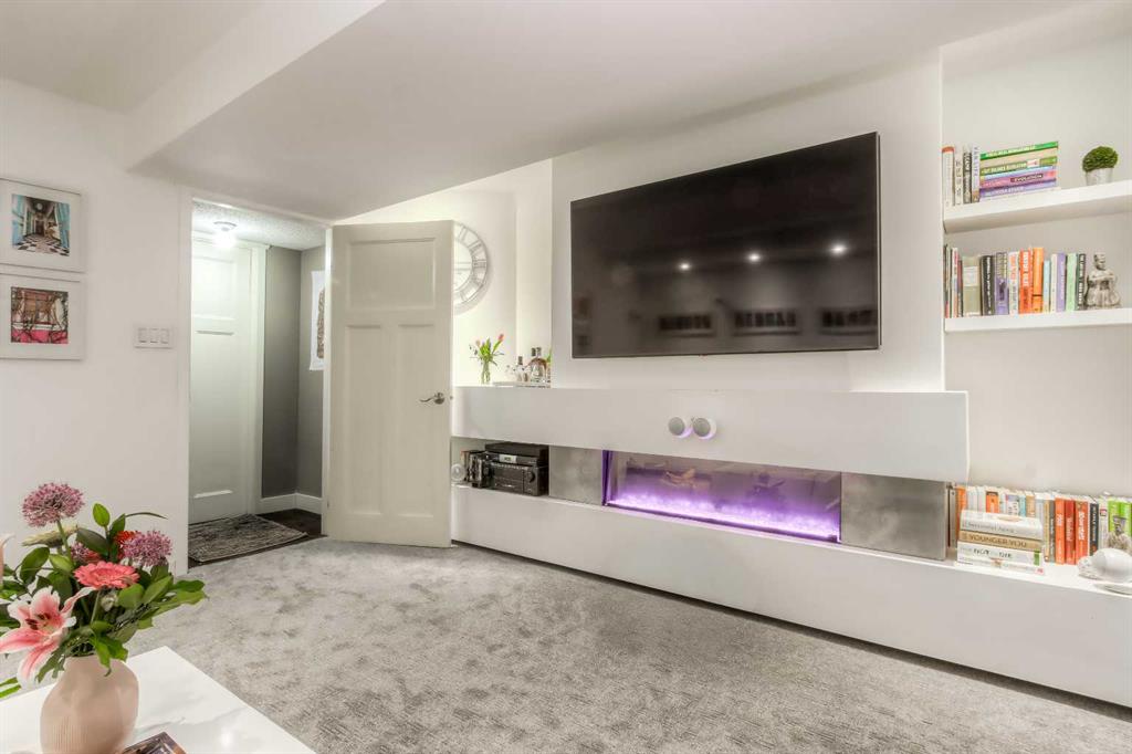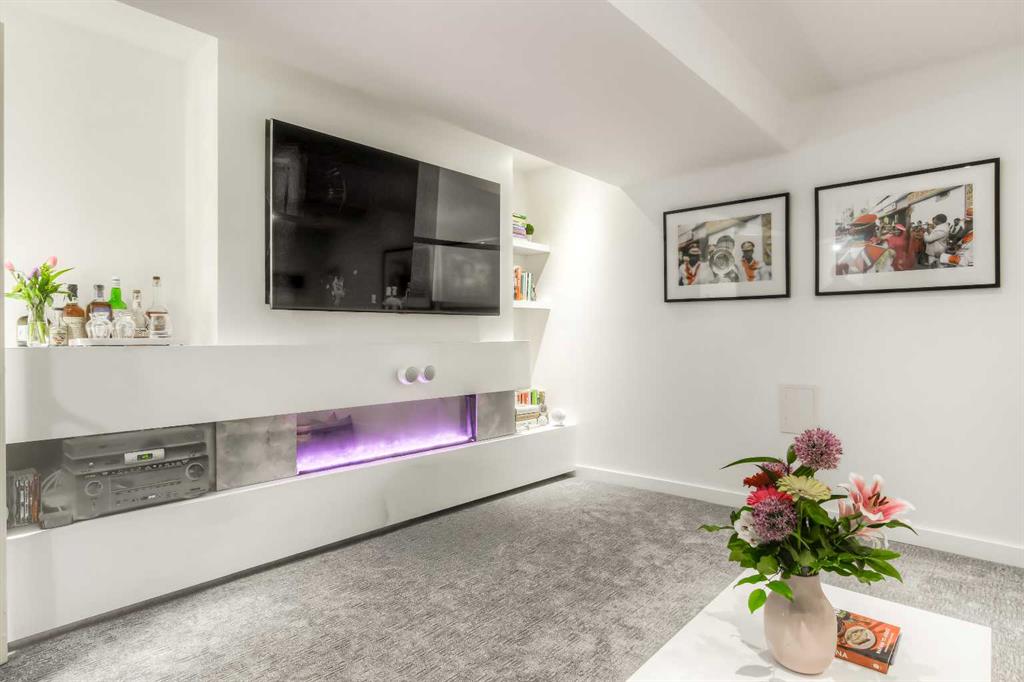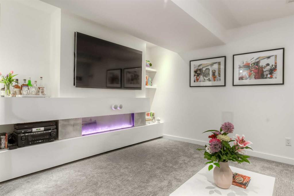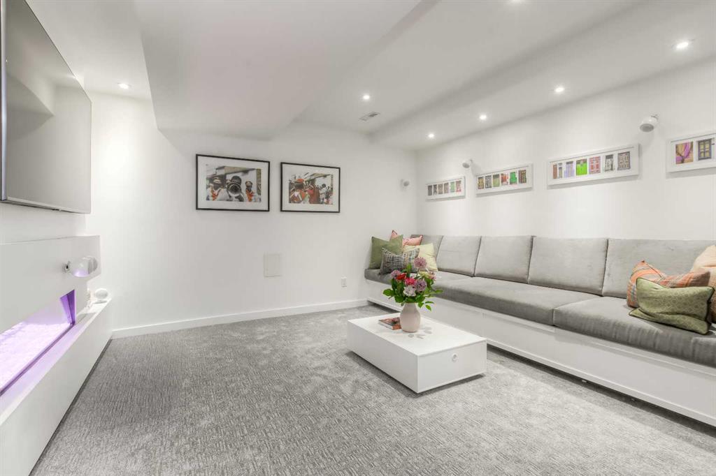 The basement is partially developed and includes a new media room complete with a fireplace, Dolby Atmos 7.1 surround sound, and custom upholstered seating—perfect for a fully immersive movie night or sports event.