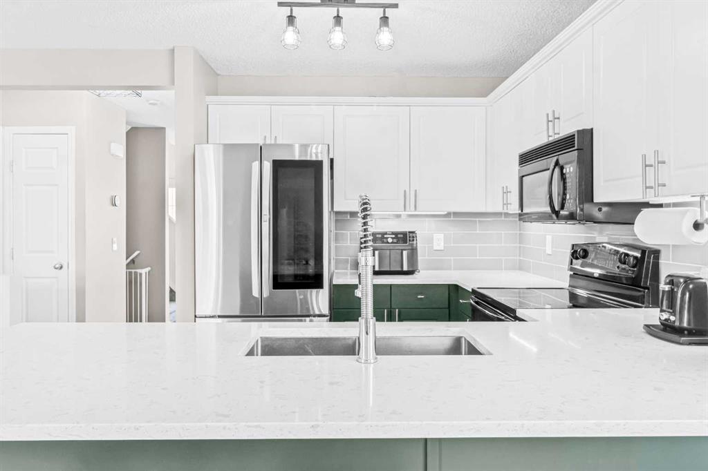 BEST PRICE IN COVENTRY HILLS ! NEW ROOF NEW SIDING NEW FURNACE NEW HOT WATER TANK! Welcome to this charming and beautifully updated 3-bedroom home nestled in the heart of Coventry Hills. With nearly 1,400 sq ft of living space, this two-storey gem offers a perfect blend of modern upgrades and cozy character. Step inside through the cheerful yellow front door and be greeted by a bright, spacious living room featuring luxury vinyl plank flooring and updated lighting throughout. The chef’s kitchen, redesigned in 2019, boasts quartz countertops, a stylish tile backsplash, stainless steel double sink, and under/over cabinet lighting—ideal for both everyday cooking and entertaining. The dining area opens to a large, fully fenced backyard offering ample space for outdoor enjoyment and potential for a double garage. Upstairs you will find a renovated 4-piece bathroom, and three generous bedrooms including a primary suite with a 2-piece ensuite. The Partially Finished Basement with Framing ready, rough in bathroom, and 2 large windows waiting for your creativity. The laundry conveniently located in a shared area for both main floor and basement access. Additional updates include: New shingles (2025), New Siding (2025), New furnace (2020), New hot water tank (2020), Updated baseboards and lighting (2019), New Fridge (2023). Located in a prime family-friendly neighborhood, this home is close to schools, public transit, shopping, restaurants, Vivo recreation centre, easy access to both Stoney Trail and Deerfoot, and more. Don’t miss your chance to own this move-in-ready home full of warmth and modern touches. Contact your agent today to book a viewing!