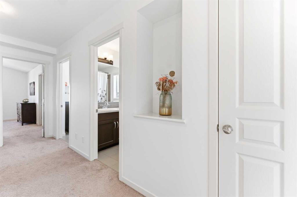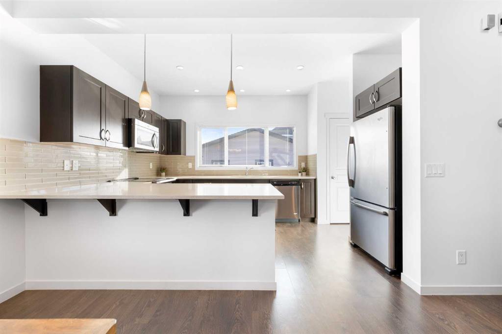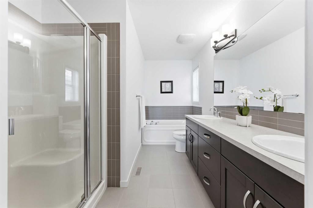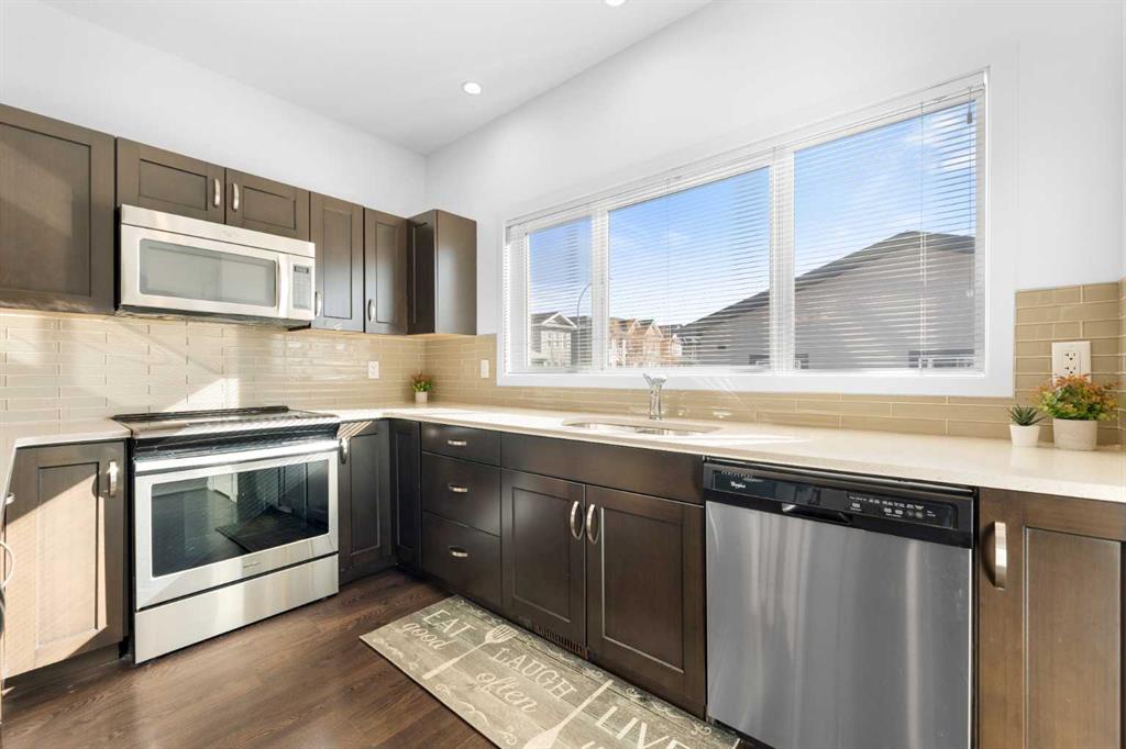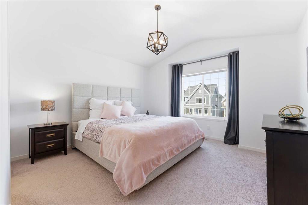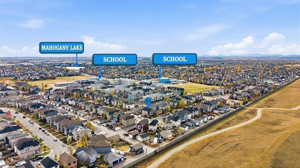 Welcome to a home that truly stands apart in the heart of Mahogany. Perfectly positioned on a fully fenced corner lot — and notably not a zero lot line — this beautifully maintained two-storey offers over 1,600 sq ft of thoughtfully designed living space above grade, exceptional natural light, and a layout that simply makes sense. From the moment you step into the open front foyer, you’ll appreciate the airy, contemporary feel. Expansive windows — including additional side yard windows — flood the home with sunshine, highlighting the upscale flooring and clean, modern finishes throughout. The main level is designed for everyday comfort and effortless entertaining. The fantastic kitchen features quartz countertops, abundant cabinetry, a peninsula island with eating bar, pendant lighting, LED pot lights, and a large window over the sink create a bright and inspiring space for cooking and gathering. The adjoining great room flows seamlessly, anchored by a gas fireplace with full tile surround — a warm and inviting focal point for cozy evenings. And tucked away is a “pocket office” – perfect for kids homework or working at home. Upstairs, the “king-sized” primary retreat feels like a private sanctuary, complete with vaulted ceilings, a large walk-in closet, and a full ensuite featuring a relaxing soaker tub and separate shower. An additional side window enhances the sense of space and light. Two more well-proportioned bedrooms complete the upper level, offering flexibility for family & guests. The basement was professionally developed in 2019 and adds versatility to the home, featuring a spacious bedroom, comfortable living room, and a full washroom — ideal for extended family, teens, or guests. Step outside to a generous south-facing backyard with a full-size covered deck, perfect for summer barbecues or relaxing in the shade. The oversized double garage measures an impressive 23×25, with approximately 200 square feet of attic storage accessible by ladder — a rare and practical bonus. Located in the award-winning lake community of Mahogany, you’ll enjoy four-season lake living with beaches, skating, paddleboarding, pathways, and parks — plus nearby schools, shopping, restaurants, and every amenity you need just minutes away. This is more than just a house — it’s a lifestyle opportunity in one of Calgary’s most sought-after communities.