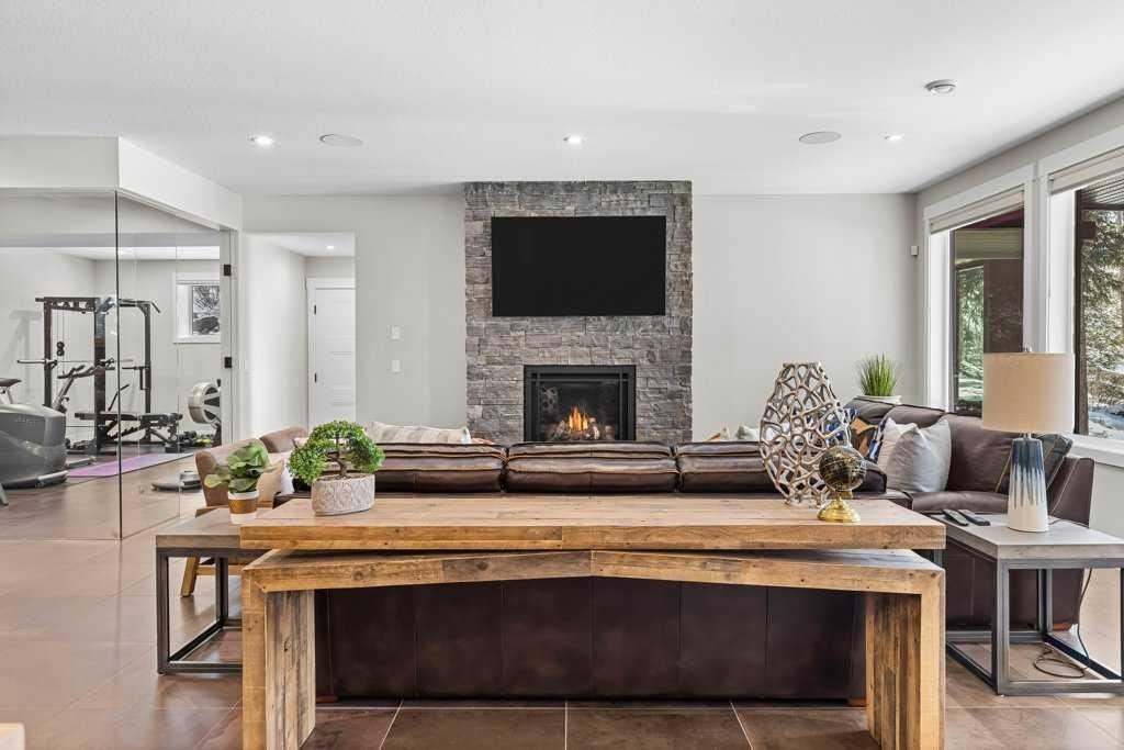Experience this 3 year old luxurious mountain home located in Silvertip! Nestled in a private location on a huge lot backing onto the Silvertip Golf Course, this four bedroom, four bathroom home boasts 4200 square feet of spectacular mountain views and generous indoor and outdoor living spaces offering lavish features throughout. The main level features a kitchen with large pantry and great room with a grand, stone fireplace, vaulted ceilings, and beam work as well as a master bedroom with en-suite and walk in closet, den/bedroom with walk in closet, full bath, and laundry room. The walkout basement offers a custom wine display and wet bar, recreation and living area with fireplace, fitness room, junior master with en-suite, an additional bedroom, full bathroom, and two storage areas. Features include Thermador appliances, open riser stairs, nine foot basement ceilings, Sonos sound system, Kohler steam shower, in floor heating in basement and garage, triple car garage, landscaping, and much more. Professional interior design services were provided to create a timeless, classic, luxurious, and mountain modern aesthetic. Fully furnished including patio furniture.