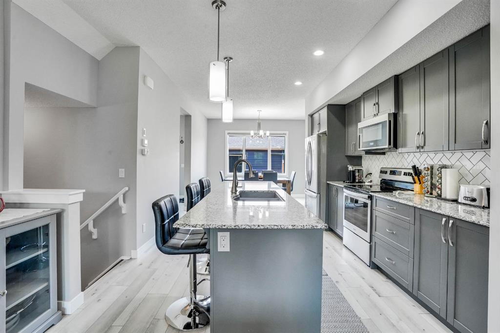 Charm meets convenience in this delightful semi-detached family home. Step into a world of warmth and comfort as you enter the open-concept living space, perfect for creating lasting memories with your family and loved ones. Enjoy an exceptional indoor and outdoor life in a home that every detail reflects a cozy warm home atmosphere, whereas, simplicity is enhanced by a balance of function, space and light. Welcome to your family dream home in the desired community of LEGACY, perfectly located near all amenities, schools, and C-Train. This home is very lovingly maintained by the original owner, fully developed, offers over 2200 square feet of developed living space. The main floor features, huge living room with beautiful modern kitchen and dining room that is spacious for your family entertaining needs. The open modern Kitchen design and the large Kitchen island enable you and your family to entertain with ease and enjoy a quiet family dinner at home. The second-floor features three spacious bedrooms, open hall way, and the primary bedroom walk-in closet and En-Suite bathroom. Further, the basement fully developed, features a bedroom, a full washroom, and a huge entertainment family room. There is EV charger installed in the garage and 240 power outlet for your future hot tub. Leather Sectional, leather matching chair, coffee table, end tables, server, dinning table with 6 leather chairs, leather sofa in the basement, bar stools, and brand new cordless snow blower with two back up batteries all include in the sale of this home. This home offers a perfect blend of style, comfort, and peace to build your family memory. Don’t miss out this beautiful modern living at its finest, come check it out. Your dream home awaits!