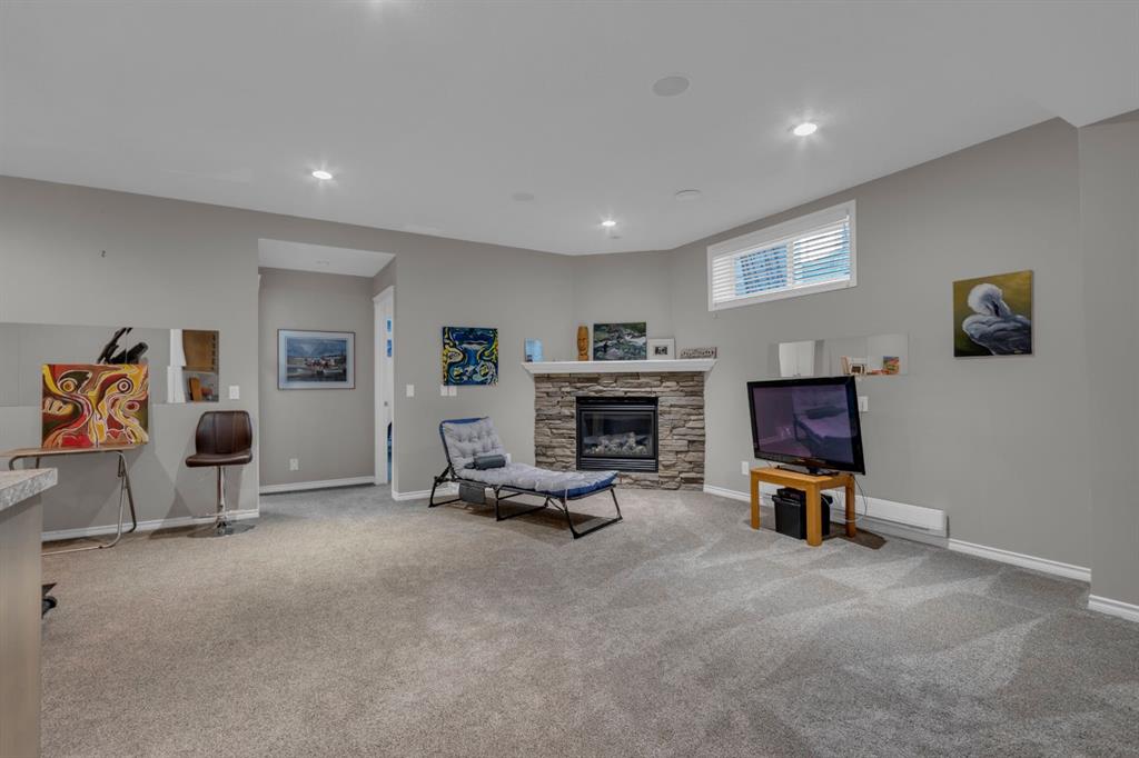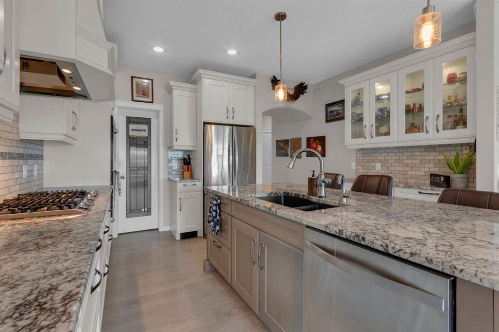 This stunning 4-bedroom bungalow built by McKee Homes showcases quality craftsmanship and thoughtful design, offering over 2,400 sq. ft. of beautifully finished living space backing onto the pond with serene views, walking paths, and easy access to schools and playgrounds. Perfect Family Or Retirement Home. The charming covered front porch welcomes you inside, where you’ll be greeted with 9’ ceilings, engineered hardwood floors, and an abundance of natural light. The open-concept main level features a chef-inspired kitchen with granite counters, stainless steel appliances including a gas stove & double oven, a large island, and a walk-in pantry—perfect for family gatherings. The main floor also hosts a spacious master retreat with a 5-piece ensuite (jet tub, oversized shower, dual sinks, walk-through closet), a second bedroom, and convenient main floor laundry. Downstairs, you’ll find a bright and inviting family room with a gas fireplace, a wet bar, two oversized bedrooms, a full bathroom, and extra comfort with electric baseboard heating. Plenty of storage is available throughout. Step outside and enjoy the fully landscaped, fenced backyard with a deck, patio, two sheds, and lush perennial gardens that bloom beautifully through the seasons—an outdoor oasis overlooking the pond. Additional highlights include R50 attic insulation, triple-pane windows, HRV system, and 50-gallon HWT. Built by McKee Homes, known for their exceptional quality and attention to detail. Don’t miss the opportunity to make this beautiful home yours—schedule your private showing today!