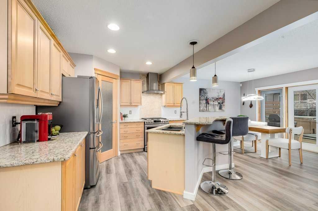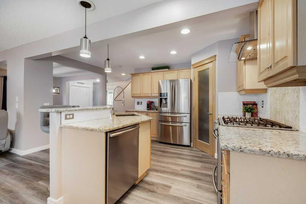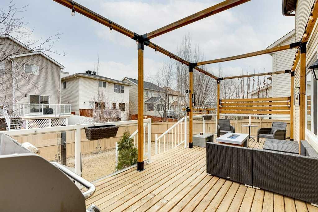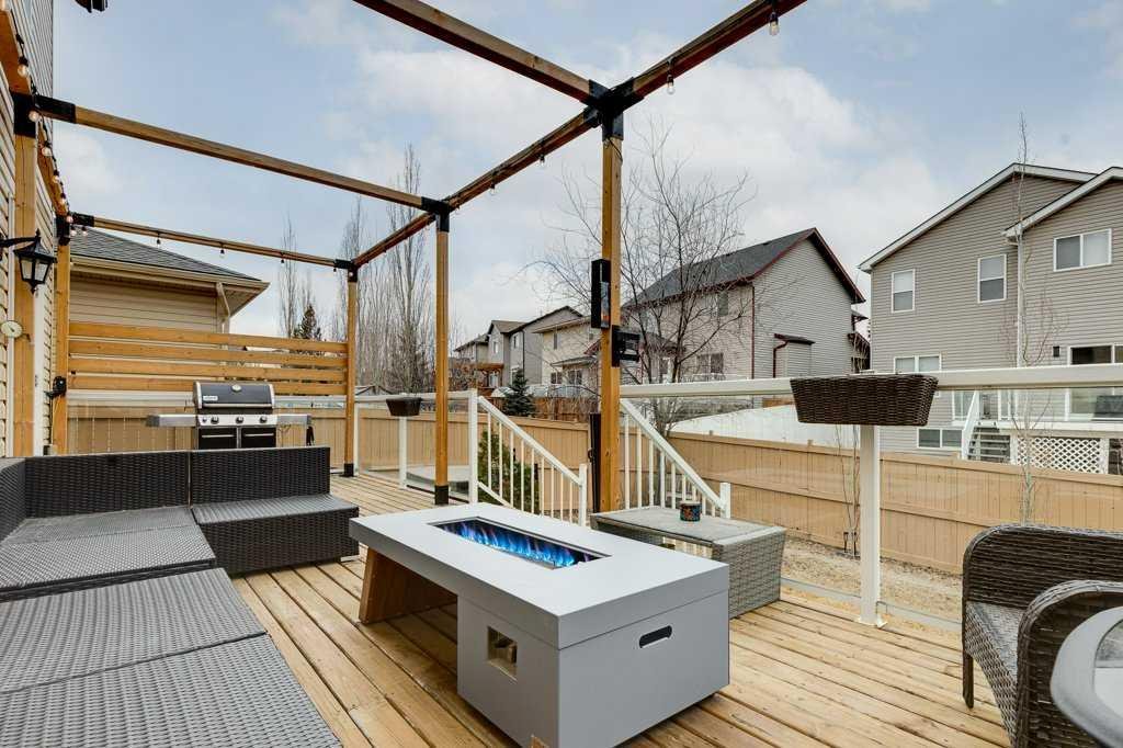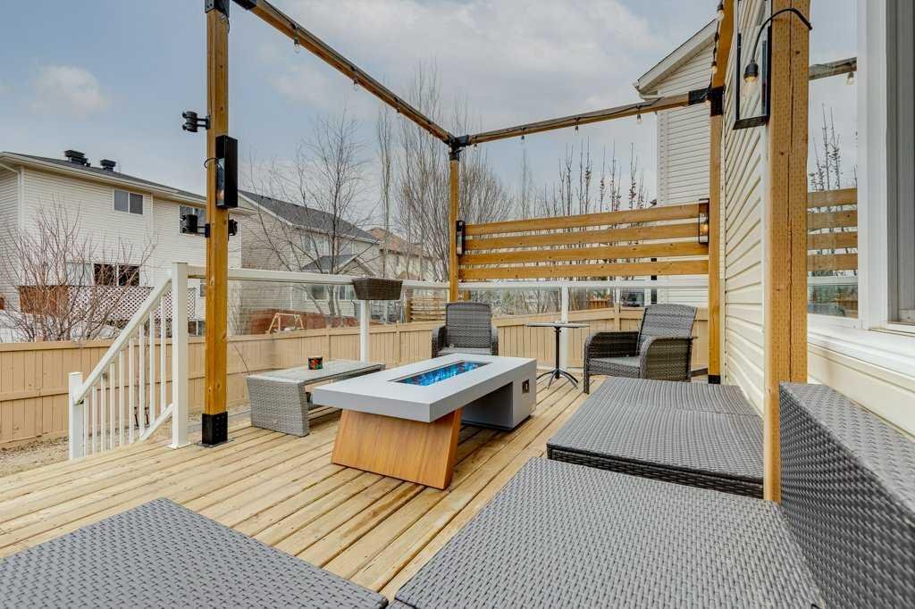 Welcome to the desirable, family-friendly community of Sagewood in Airdrie! This immaculate, 2-story original-owner home offers over 1,705 sq ft of well-designed living space on a quiet street, featuring 3 bedrooms and 3 bathrooms. Pride of ownership is evident throughout, with numerous updates and upgrades. The bright, open-concept main floor showcases a beautifully renovated kitchen complete with stainless steel appliances, sleek granite countertops, an island, ample cabinetry, a walk-in pantry and a cozy breakfast nook. Warm and inviting family room with a cozy fireplace. New luxury vinyl plank flooring runs throughout the main level. Upstairs, you’ll find a spacious primary bedroom with a walk-in closet and a 5-piece ensuite featuring a relaxing soaker tub. Two additional generously sized bedrooms and a convenient upper-level laundry complete the upper floor. The undeveloped basement is roughed in and ready for your creative vision. Step outside to an entertainer’s dream backyard, featuring an extended deck, pergola, gas line for BBQ, and a gas line fire pit. Outdoor LED lighting can be programmed year-round for any occasion. Additional updates include central A/C, fresh paint, a newer washer and dryer, updated lighting and a newer furnace. Ideally located close to schools, shopping, and pathways, with easy access to all amenities. Check out the 3D tour or book your private showing today!