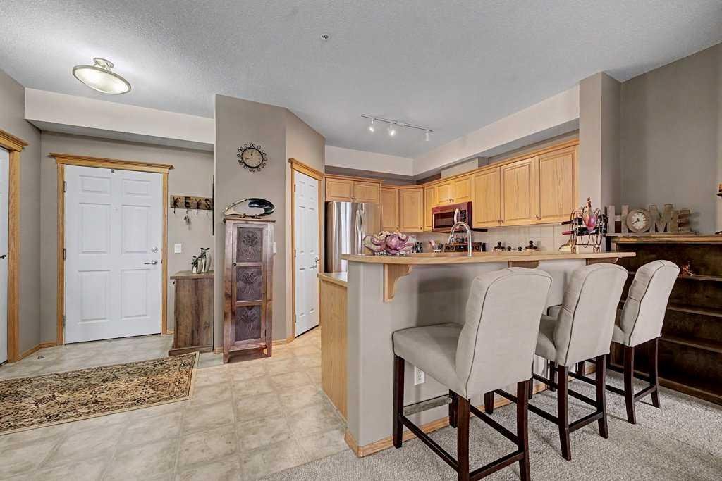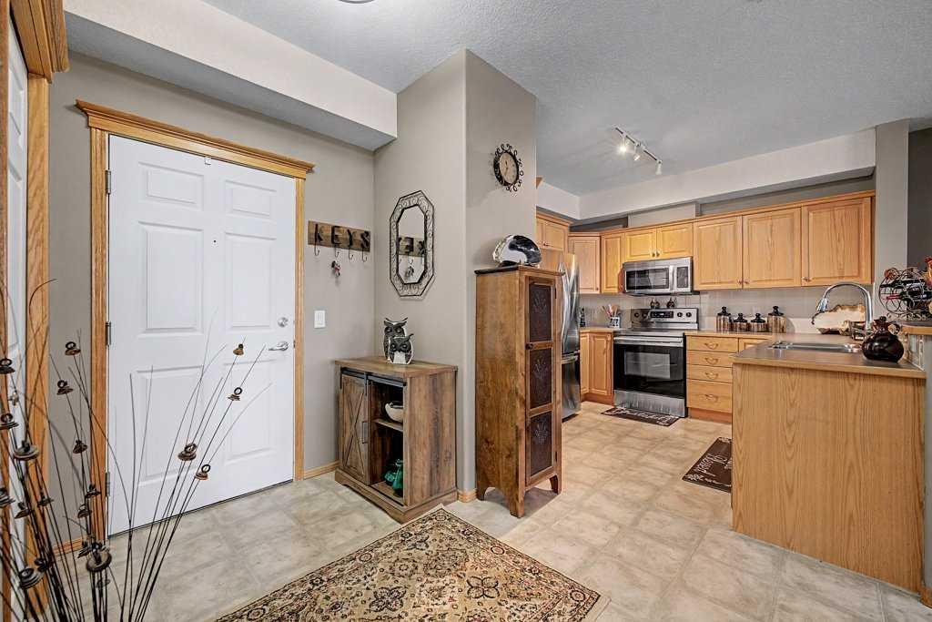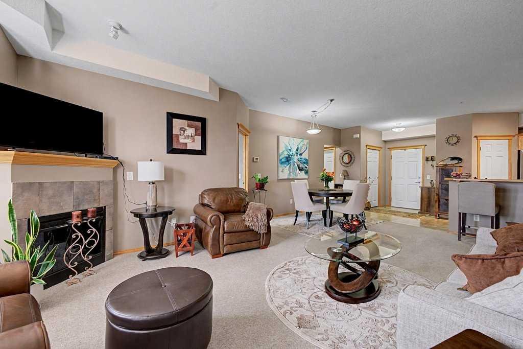 Come home to this highly sought after development of Sierras of Evergreen! Ideally located offering a walk across the street to access Sobeys, Starbucks, Tim’s, banks, restaurants, Shoppers Drug Mart, medical clinic & more! A nearby, major bus route & proximity to the LRT make this ideal for those that want use transit to their destination. This is a resort style development offering unparalleled amenities: an indoor pool, hot tub, fitness centre, theatre room, workshop, games & craft rooms, library, pool table & shuffleboard, wine making room, car wash, guest suites & more! The unit is ideally located on the main floor of building B. Step out onto your private patio surrounded by trees & lush shrubs then off you go without needing to use the common hallways or elevator. Perfect for pet owners who walk their four-legged friends! This 2-bedroom 2 bath unit is air conditioned, has a spacious layout and enjoys loads of natural sunshine through numerous windows. The spacious Great room with cozy fireplace is open to the kitchen offering ample counterspace, cabinets, stainless steel appliances & a sit up breakfast bar. The primary bedroom enjoys its private ensuite bathroom & roomy walk-in closet. The titled parking stall & assigned storage unit are close to the elevator. Condo fees include heat, electricity, water/sewer. Come enjoy the good life!