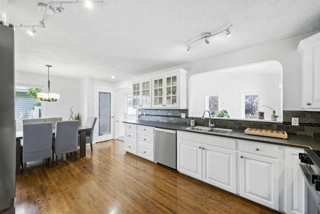 Discover the perfect blend of contemporary design and everyday practicality in this stunning detached 3-level split home situated on a quiet cul-de-sac facing a green space. Meticulously updated and bathed in natural light, this residence offers an effortless flow designed for the modern family. Step into an expansive open-concept layout where spaces transition seamlessly. The heart of the home is the refreshed kitchen, featuring professionally painted cabinetry and newer appliances. Adjacent to the kitchen is a bright dinette and a large welcoming living room ideal for both quiet evenings and lively entertaining. Unique to this home is the oversized open mudroom, which thoughtfully incorporates a convenient laundry area. Retreat to the upper floor to your well appointed primary bedroom, two generously sized bedrooms and a renovated 5-piece bathroom, offering dual vanities and premium finishes. The lower level defies typical basement expectations with a massive recreation/family room that benefits from natural light through large windows. This level also features a private office/den—perfect for a quiet workspace or hobby room, and a full 3-piece bathroom. Enjoy Calgary’s sunshine in your South-facing backyard, a private sanctuary with mature trees for and a wrap-around deck. A double detached garage and an additional RV/Carpark complete your home providing ample space for vehicles and extra storage. Situated in a vibrant community with easy access to a wealth of local amenities, schools, and parks. With a quick and convenient commute to downtown, you get the peace of a residential neighbourhood without sacrificing urban accessibility.