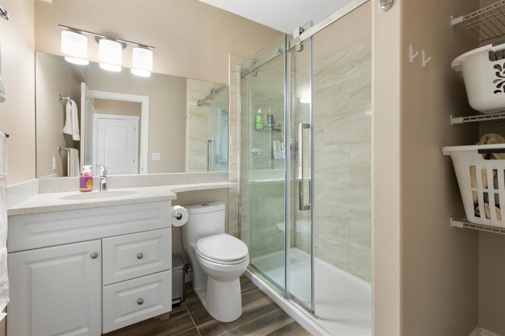 The fully finished walk-out basement expands your living space with stylish laminate flooring, a large recreation room with built-in dry bar, one bedroom, a flex room, and a full bathroom. The walk-out leads to a covered patio and a fully fenced backyard with raised garden beds — perfect for kids, pets, and gardeners alike.