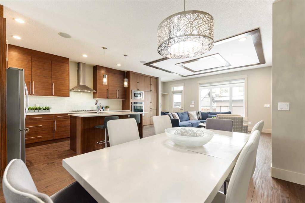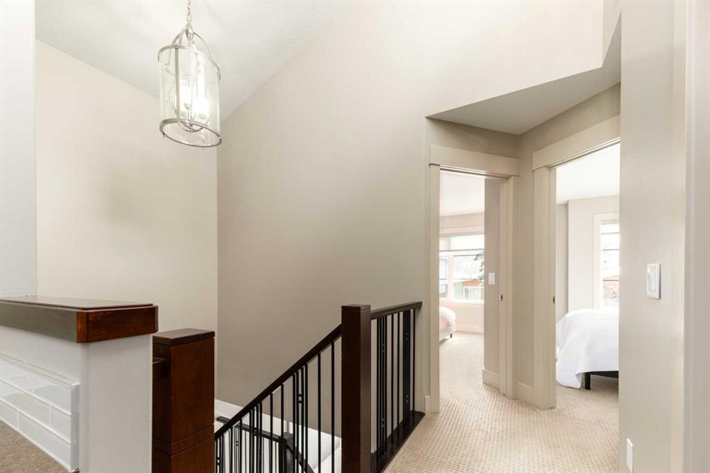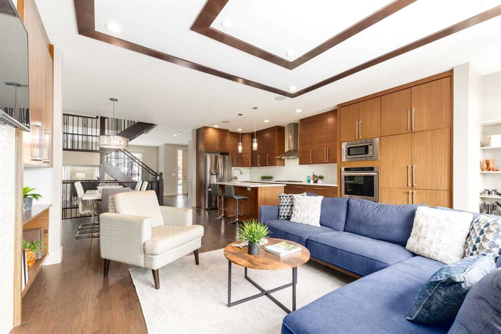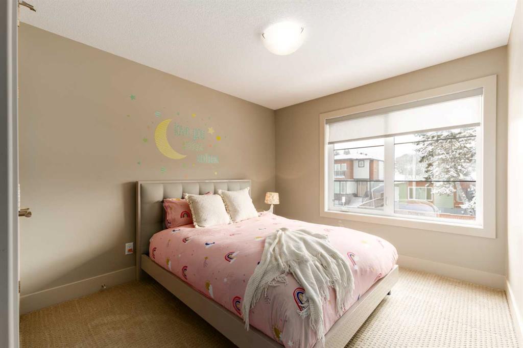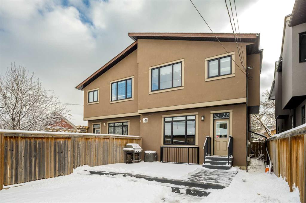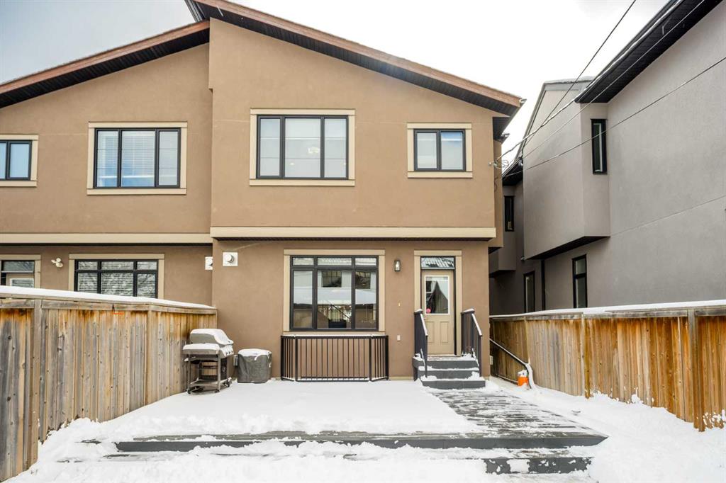 Positioned in the coveted inner-city enclave of Erlton, this semi-detached residence offers a rare blend of architectural presence and everyday livability, just moments from downtown, the Elbow River pathways, and the vibrant energy of Mission’s acclaimed dining and boutique scene. Evenings here carry a rhythm of their own. Walk to Flames games, wander home from dinner on 4th Street, or settle into your own backyard as the Stampede fireworks light up the skyline. Inside, the home unfolds with a sense of intention and design continuity. A striking, open-riser staircase anchors the main level – both sculptural and functional, setting the tone for the refined finishes that follow. The kitchen is equal parts statement and workspace, with sleek, modern cabinetry, stone countertops, generous storage, and a central island designed for gathering. It connects seamlessly to the living and dining areas, where thoughtful ceiling detailing adds architectural interest and a subtle sense of volume. Upstairs, the same sense of considered design continues, where striking vaulted ceiling details introduce a feeling of openness and visual intrigue. A built-in desk nook offers a quiet space for work or study, while a well-appointed family bath serves the secondary bedrooms. The primary suite offers a true sense of escape, complete with a spacious walk-in closet and a spa-inspired ensuite featuring a deep soaker tub, dual vanity, and an oversized steam shower wrapped in clean, contemporary finishes. A conveniently located upper-floor laundry room completes the level, adding ease to everyday living. The fully developed lower level extends the living experience with a generous recreation room, wet bar, fourth bedroom, and an additional full bathroom, ideal for guests, movie nights, home-gym, or a private home retreat. Central air conditioning ensures year-round comfort, complementing the home’s thoughtful livability. This is a home that lives as beautifully as it presents. Where design, location, and lifestyle converge in one of Calgary’s most walkable and connected communities.