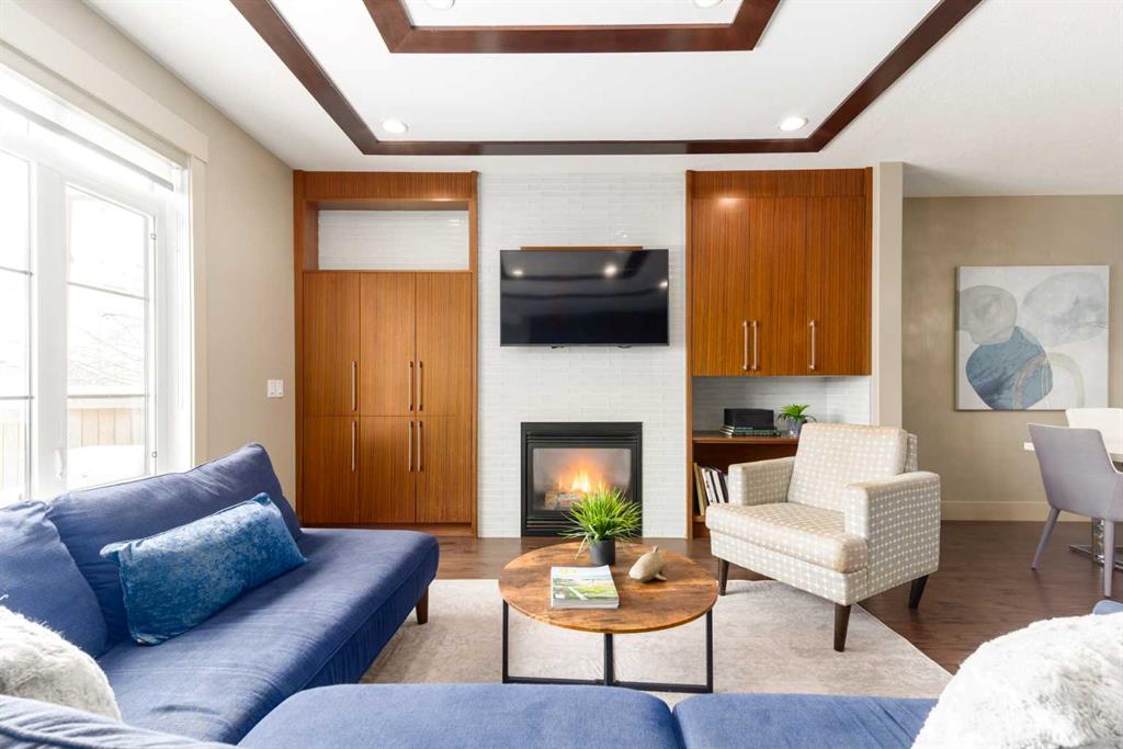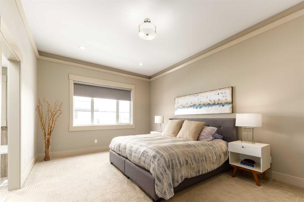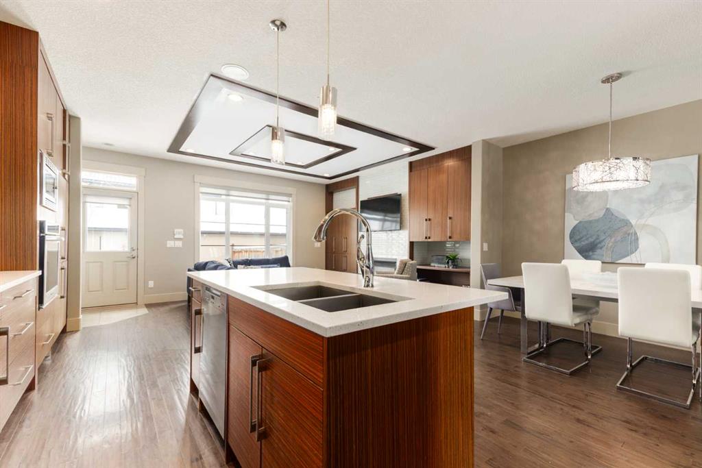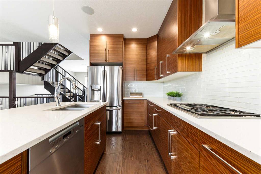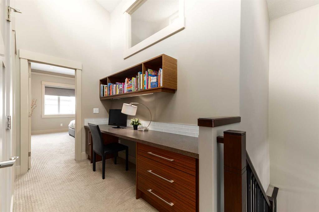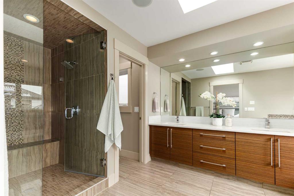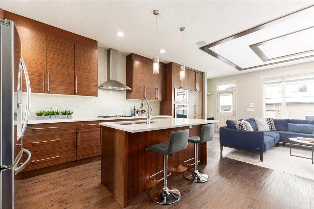Positioned in the coveted inner-city enclave of Erlton, this semi-detached residence offers a rare blend of architectural presence and everyday livability, just moments from downtown, the Elbow River pathways, and the vibrant energy of Mission’s acclaimed dining and boutique scene. Evenings here carry a rhythm of their own. Walk to Flames games, wander home from dinner on 4th Street, or settle into your own backyard as the Stampede fireworks light up the skyline. Inside, the home unfolds with a sense of intention and design continuity. A striking, open-riser staircase anchors the main level – both sculptural and functional, setting the tone for the refined finishes that follow. The kitchen is equal parts statement and workspace, with sleek, modern cabinetry, stone countertops, generous storage, and a central island designed for gathering. It connects seamlessly to the living and dining areas, where thoughtful ceiling detailing adds architectural interest and a subtle sense of volume. Upstairs, the same sense of considered design continues, where striking vaulted ceiling details introduce a feeling of openness and visual intrigue. A built-in desk nook offers a quiet space for work or study, while a well-appointed family bath serves the secondary bedrooms. The primary suite offers a true sense of escape, complete with a spacious walk-in closet and a spa-inspired ensuite featuring a deep soaker tub, dual vanity, and an oversized steam shower wrapped in clean, contemporary finishes. A conveniently located upper-floor laundry room completes the level, adding ease to everyday living. The fully developed lower level extends the living experience with a generous recreation room, wet bar, fourth bedroom, and an additional full bathroom, ideal for guests, movie nights, home-gym, or a private home retreat. Central air conditioning ensures year-round comfort, complementing the home’s thoughtful livability. This is a home that lives as beautifully as it presents. Where design, location, and lifestyle converge in one of Calgary’s most walkable and connected communities.