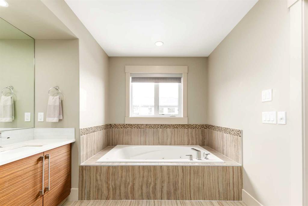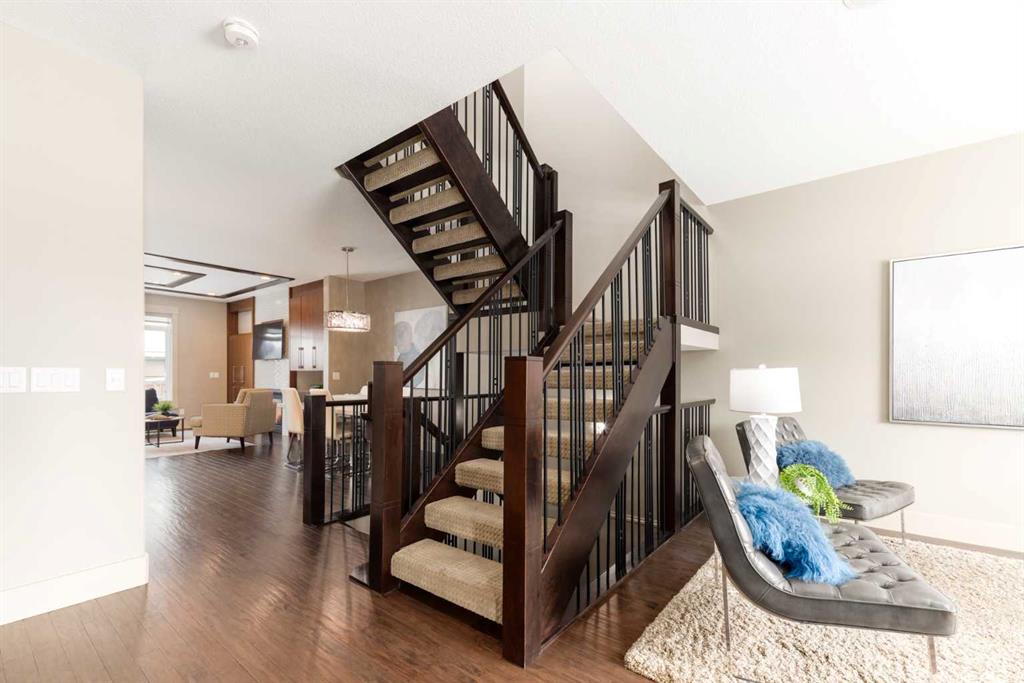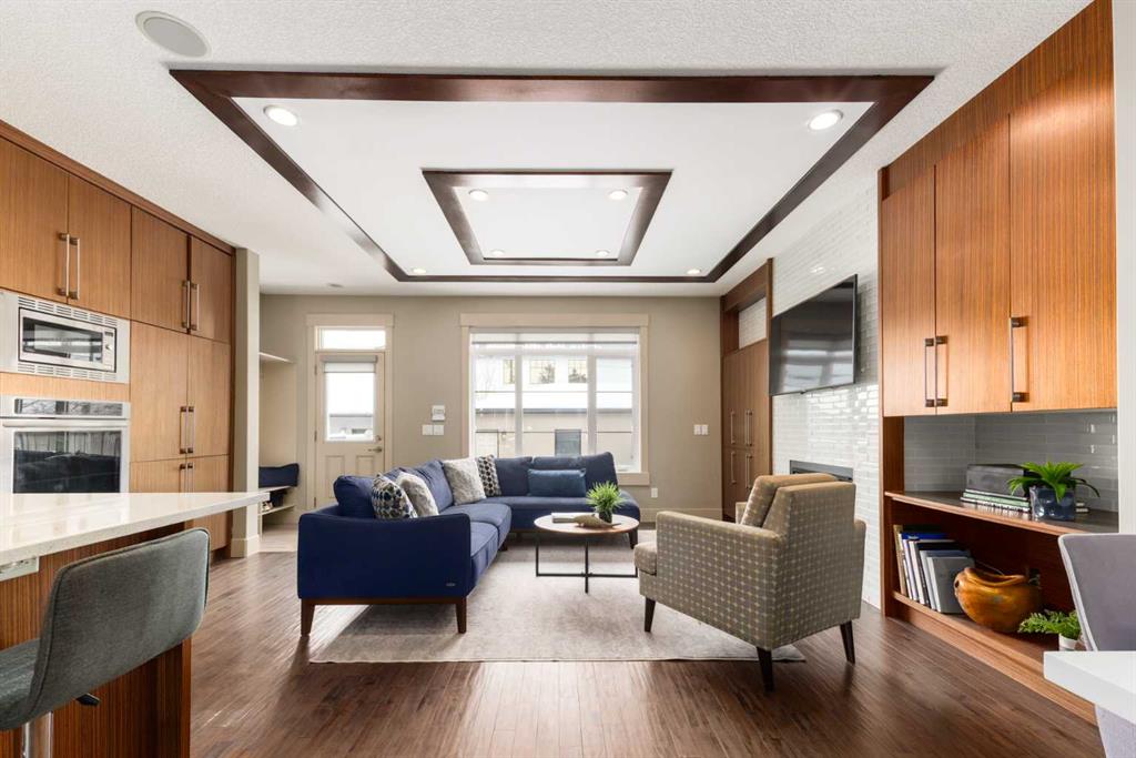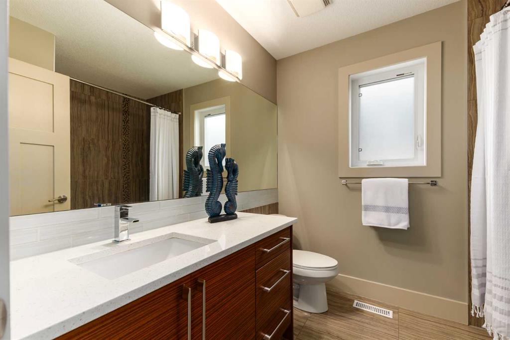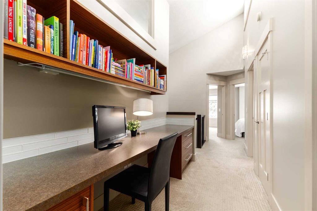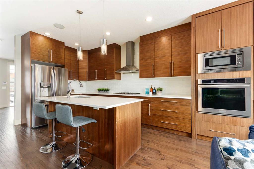 Positioned in the coveted inner-city enclave of Erlton, this semi-detached residence offers a rare blend of architectural presence and everyday livability, just moments from downtown, the Elbow River pathways, and the vibrant energy of Mission’s acclaimed dining and boutique scene. Evenings here carry a rhythm of their own. Walk to Flames games, wander home from dinner on 4th Street, or settle into your own backyard as the Stampede fireworks light up the skyline. Inside, the home unfolds with a sense of intention and design continuity. A striking, open-riser staircase anchors the main level – both sculptural and functional, setting the tone for the refined finishes that follow. The kitchen is equal parts statement and workspace, with sleek, modern cabinetry, stone countertops, generous storage, and a central island designed for gathering. It connects seamlessly to the living and dining areas, where thoughtful ceiling detailing adds architectural interest and a subtle sense of volume. Upstairs, the same sense of considered design continues, where striking vaulted ceiling details introduce a feeling of openness and visual intrigue. A built-in desk nook offers a quiet space for work or study, while a well-appointed family bath serves the secondary bedrooms. The primary suite offers a true sense of escape, complete with a spacious walk-in closet and a spa-inspired ensuite featuring a deep soaker tub, dual vanity, and an oversized steam shower wrapped in clean, contemporary finishes. A conveniently located upper-floor laundry room completes the level, adding ease to everyday living. The fully developed lower level extends the living experience with a generous recreation room, wet bar, fourth bedroom, and an additional full bathroom, ideal for guests, movie nights, home-gym, or a private home retreat. Central air conditioning ensures year-round comfort, complementing the home’s thoughtful livability. This is a home that lives as beautifully as it presents. Where design, location, and lifestyle converge in one of Calgary’s most walkable and connected communities.