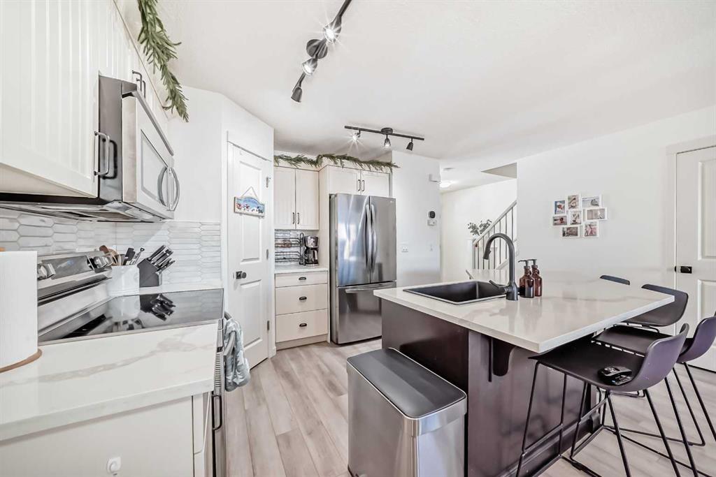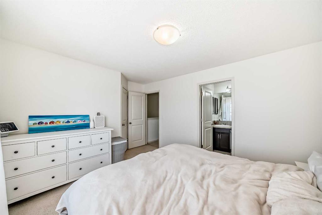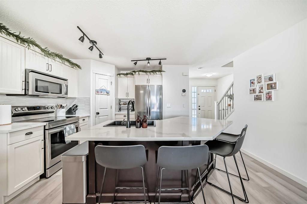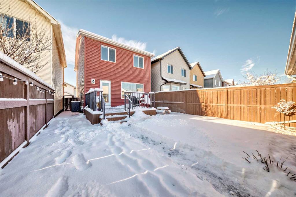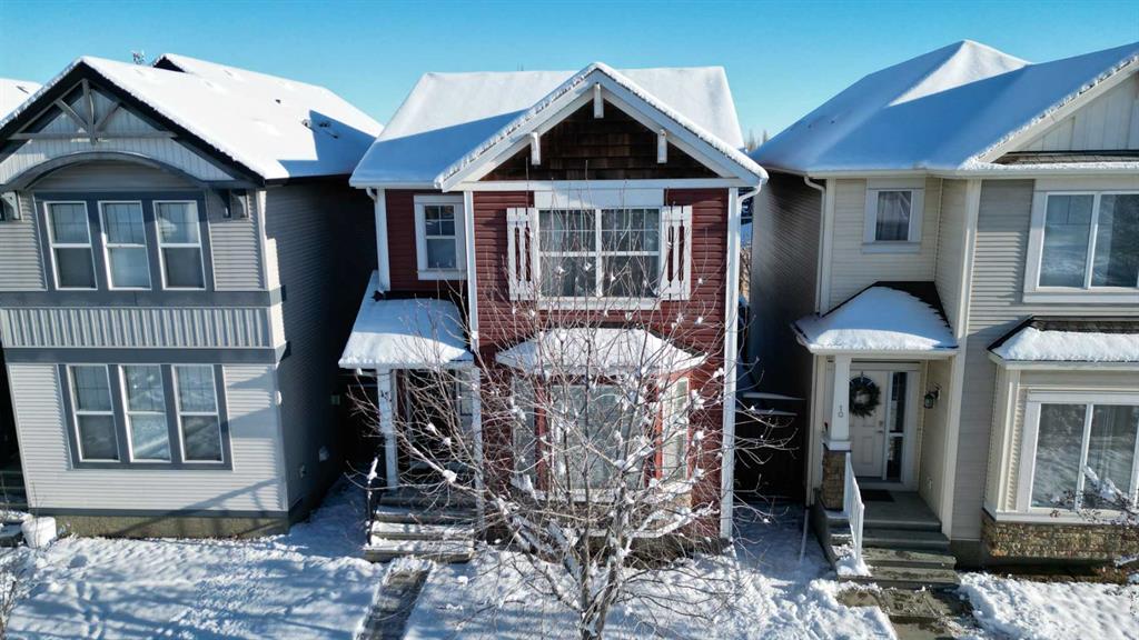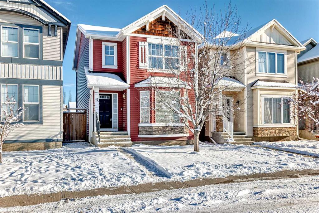 Welcome home to this lovingly cared for home that is literally a 5 min walk to TWO different schools, many parks and playgrounds! Auburn Bay is one of the best SE neighbourhoods with TONS of amenities, a 4 season LAKE, South Health campus hospital, YMCA, off leash dog park, numerous pubs, shops, restaurants, playgrounds, ponds, parks and walking paths! This home features a sunny front flex room that is perfect for a home office or kids play room! As you walk through to the living areas you will love the open floor plan with the kitchen being the focal point and offering stainless steel appliances, quartz countertops, tiled backsplash and a convenient corner pantry! Adjacent to the kitchen you have a good sized dining area and large living room with a beautiful feature wall! The main floor is completed with a half bath at the rear of the house and a door with access to the yard and detached garage! Upstairs you will appreciate the primary bedroom and the fact that you have a full ensuite bathroom and a walk in closet! In addition there are 2 more bedrooms, another full bathroom AND upper level laundry room! In addition to all of THIS you will also appreciate the house was painted in 2023, recent furnace cleaning and service, restained fence in 2022, hot water tank was replaced in 2022, insulated and drywalled double detached garage, recent A/C installation and so much more! This one is a beauty and ready for a new owner!