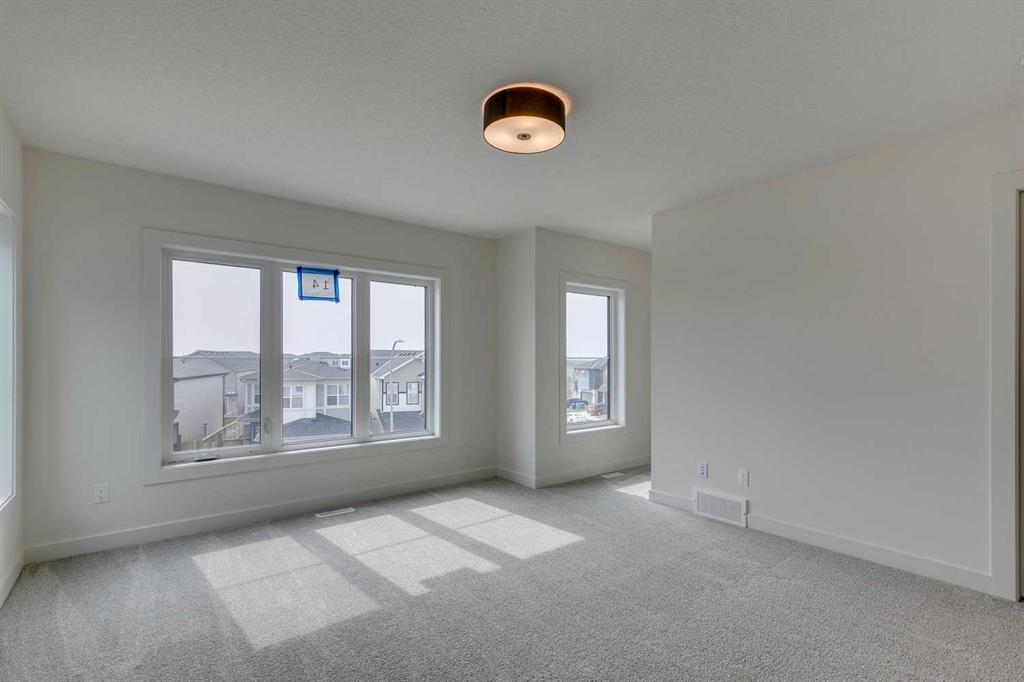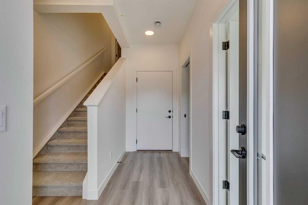 Unbeatable value! Come see for yourself! The “Alden” is one of Fifth Avenue Homes’ most popular floor plans. This 3 storey, tri-plex style end unit townhome has over 1,700 sqft of luxury living space & a double attached rear garage with direct access into the home. The entry level has a spacious mudroom, 2 pc bath, flex room, which is perfect for a home office or gym & mechanical. The main floor, with an excellent, open plan, features a huge great room with 10×8 balcony, dream kitchen highlighted by an oversized, 5-stool breakfast bar island, Quartz countertops & custom tile backsplash, adjoining dining area, walk-in study & 2 pc bath. The upper level offers a 4 pc bath, laundry, spacious bedroom with walk-in closet & a gorgeous primary suite with walk-in closet, 4 pc ensuite (double basin vanity & 5’ step-in shower closet). High-end plumbing & lighting fixtures throughout! Fifth Avenue Homes is well known for above standard finishings & attention to detail both in design & workmanship. This listing has just been completed & is ready for occupancy – pick your possession & move right in. GST included in sale price. Low condo fees of $299/month for landscaping, snow & trash removal – Builder is offering FREE condo fees for TWO years and will cover all monthly condo fees for 24 months starting the first month following the possession date. Payment details to be determined at time of an offer. The Cottages are situated in the heart of Belvedere & just minutes to all the amenities in East Hills Plaza (Costco, movie theatre, shops & restaurants), close to future CBE elementary school site & 10 minutes to downtown on the Max Purple transit. Belvedere offers a wonderful family lifestyle with parks, natural wetlands and pathways. Book a showing with your Realtor today!