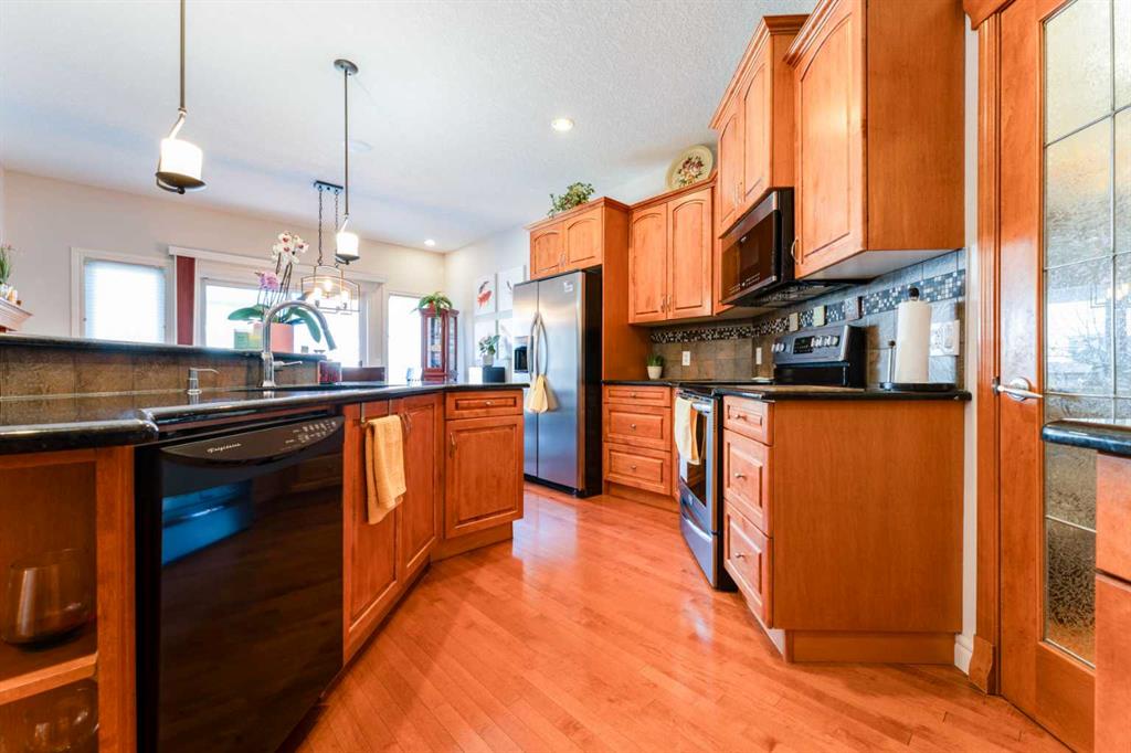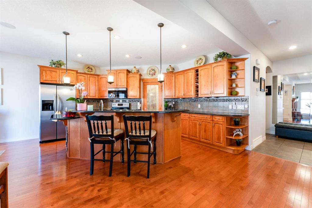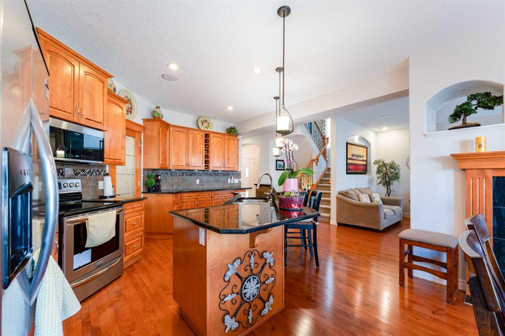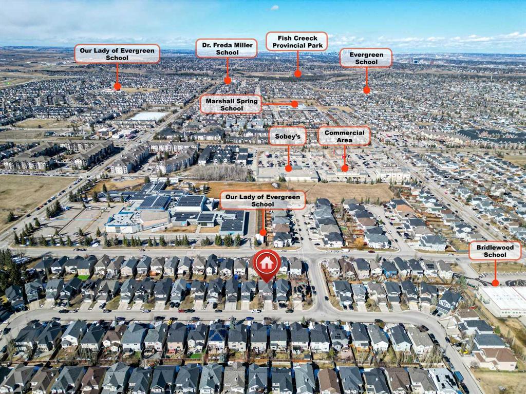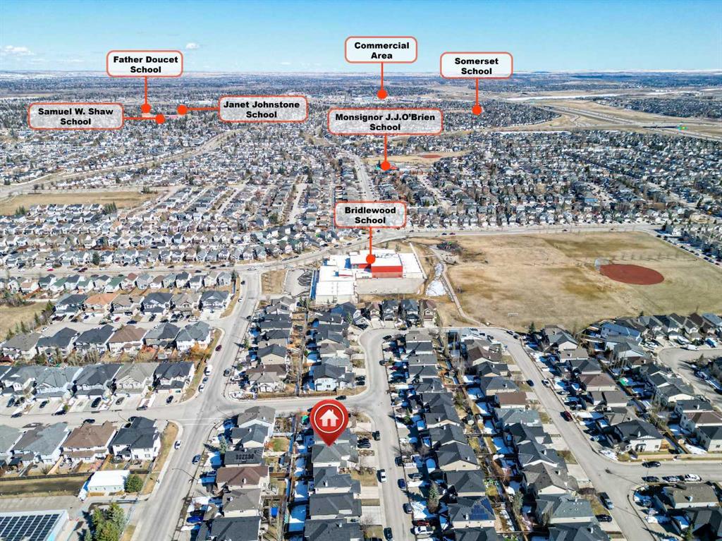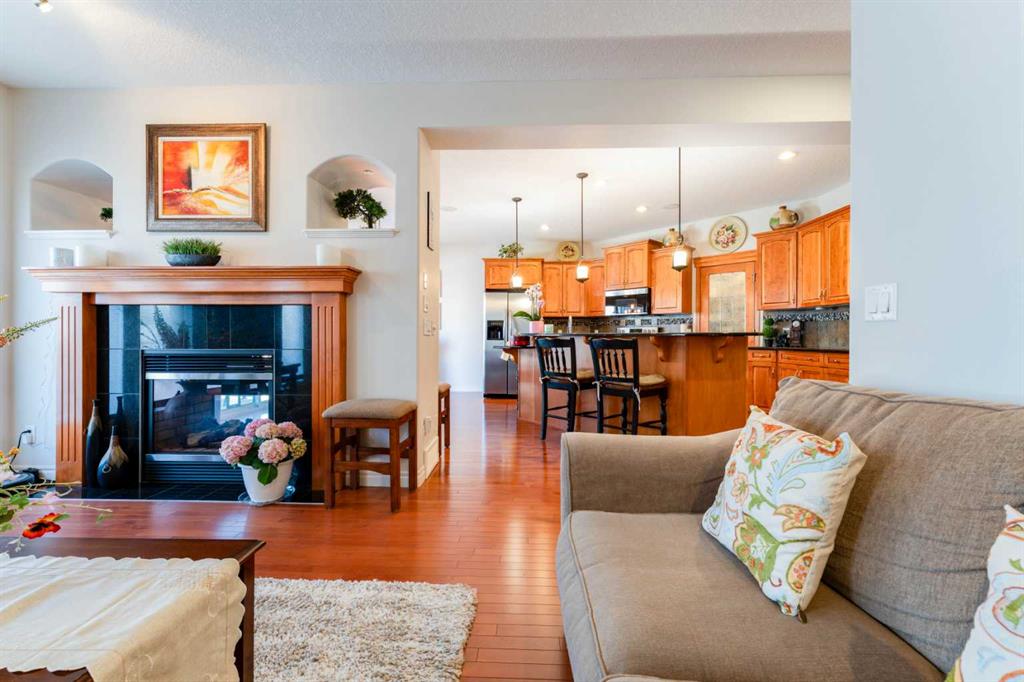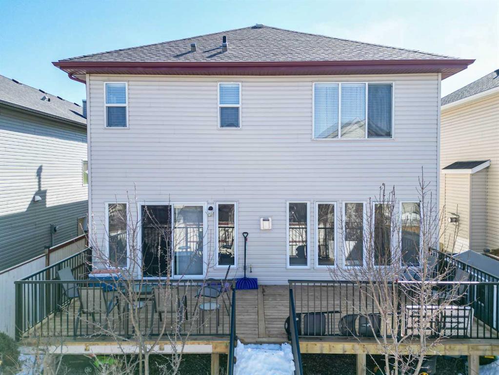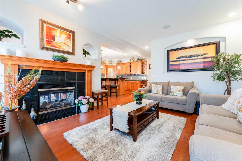 Welcome to 14 Bridlerange Circle SW! Step into this BEAUTIFULLY UPGRADED and SPACIOUS 2-storey home offering 2,945.33 sq ft of total living space, including a fully developed basement—thoughtfully designed for growing families. From the moment you arrive, the charming curb appeal, enhanced by stone accents, vinyl siding, and upgraded front railings, along with a double attached garage, sets the tone for what’s inside. The welcoming foyer opens into a bright, open-concept main floor featuring 9-FOOT CEILINGS and rich HARDWOOD FLOORING that flows throughout the main living areas, creating an airy and elegant feel. The spacious living room is anchored by a beautifully upgraded DOUBLE-SIDED FIREPLACE with modern tile surround and mantle, seamlessly connecting to the dining area and creating a warm, inviting atmosphere for both everyday living and entertaining. The heart of the home is the stunning fully UPGRADED KITCHEN, showcasing refinished cabinetry, stylish backsplash, upgraded countertops, a raised eating bar, and a built-in wine bar, perfectly blending functionality and style. A BRAND-NEW REFRIGERATOR adds even more value. The adjacent dining area is ideal for hosting family dinners and special occasions. A 2-piece bathroom, main floor laundry, and direct access to the double attached garage add everyday convenience. Step outside to your newly built 10’ x 20’ deck with durable steel railings, complemented by a spacious private backyard—perfect for summer BBQs, entertaining, or simply relaxing. Enjoy evenings under the OUTDOOR SMART CEILING LIGHTING SYSTEM, adding both ambiance and modern convenience to your outdoor space. Upstairs, you’ll find a rare and highly desirable bonus family room—perfect for movie nights, a kids’ play area, or a second living space. The UPGRADED STAIRCASE with modern railings adds a stylish architectural touch. The primary retreat offers a peaceful escape, complete with a walk-in closet and a luxurious 5-piece ensuite featuring double sinks, a soaker tub, and a separate shower. Two additional generously sized bedrooms and a full 4-piece bathroom complete the upper level—perfect for a growing family. The FULLY DEVELOPED BASEMENT expands your living space with a large recreation room featuring a wet bar—ideal for entertaining or family fun nights. You’ll also find two additional bedrooms, a home office, and a 3-piece bathroom, offering incredible flexibility for guests, teens, or multi-generational living. Located in the highly sought-after community of BRIDLEWOOD, this home offers a family-friendly lifestyle with UNBEATABLE CONVENIENCE: walking distance to parks, playgrounds, and pathways, THREE EXCELLENT SCHOOLS and daycare options, quick connections to major routes for commuting, and overall a safe, welcoming neighborhood. With its thoughtful upgrades, modern finishes, and expansive living spaces, this home delivers exceptional value and comfort for today’s growing family.