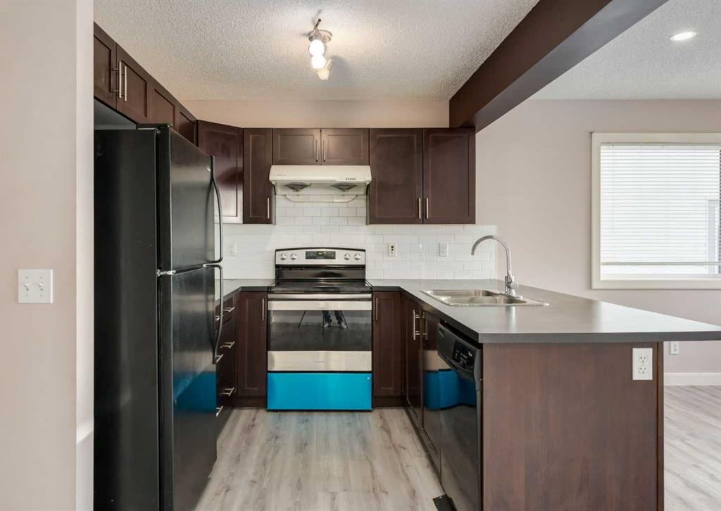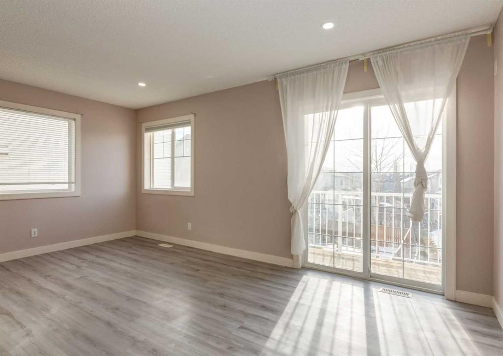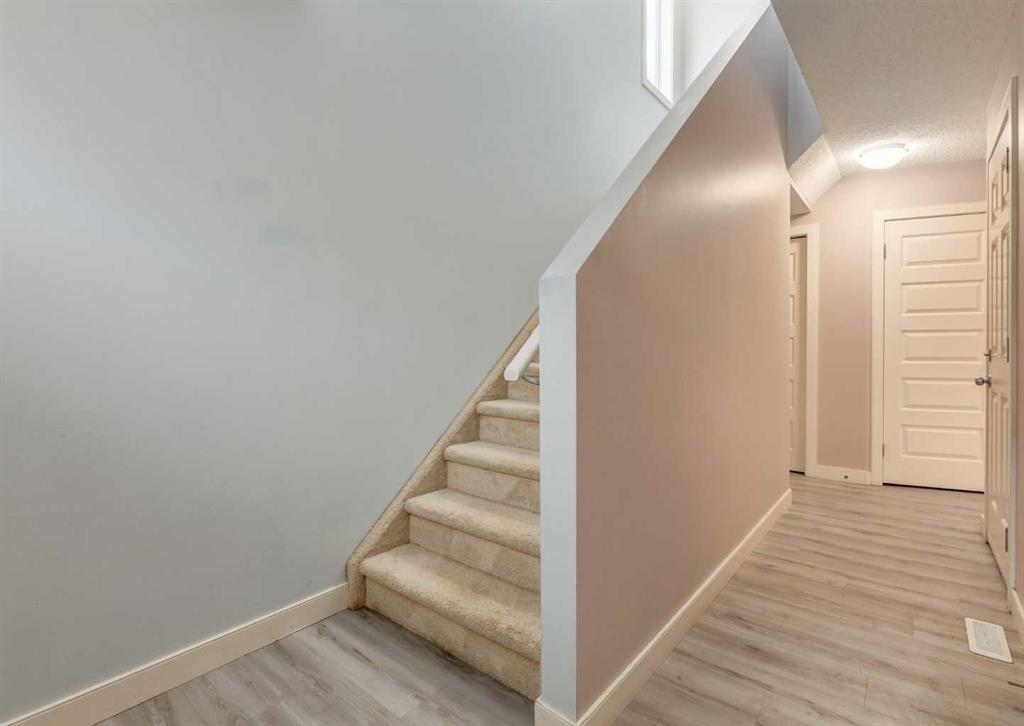 Walkout | Parking for 3 Vehicles | Air Conditioned | 3 bedrooms | 2.5 Bathrooms. Welcome to this bright end-unit walk-out townhouse in the highly sought-after, family-friendly community of Panorama Hills. This thoughtfully designed air conditioned home offers an open-concept main floor filled with natural light, featuring a spacious living area, a well-appointed kitchen, a dedicated dining space, and a convenient 2-piece bath. Durable vinyl flooring runs throughout the main level, while sliding patio doors lead out to your private balcony—perfect for summer BBQs and relaxing evenings. Upstairs, you’ll find three generously sized bedrooms, including a primary retreat with a walk-in closet, along with two full bathrooms—ideal for growing families or shared living. The walk-out basement with rough in for bathroom adds incredible versatility, complete with laundry, a large window, and potential to develop flexible space for a home gym, media room, or additional storage. Step outside to a fully developed greenspace backyard, offering both privacy and room to enjoy. The single attached garage plus full driveway provides parking for three vehicles with ease. Notable updates include shingles(2025) and hot water tank(2025). Located just steps from schools, shopping, restaurants, and scenic walking paths, this home combines comfort, convenience, and lifestyle. Click on media for the video and book your private showing today.