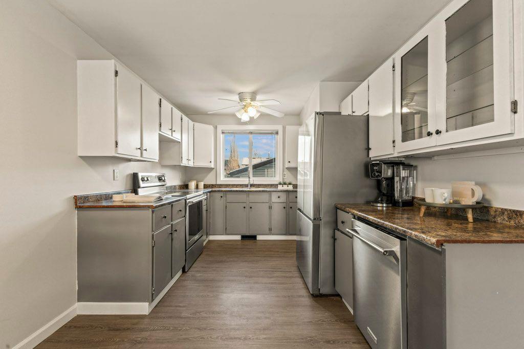 This 1980-built bungalow offers a bright, thoughtfully updated layout with luxury vinyl plank flooring and an open concept main living area designed for both everyday comfort and easy entertaining. Large windows fill the home with natural light, creating a warm and inviting atmosphere throughout. The main level features 3 bedrooms above grade, making it an ideal fit for first-time buyers, young families, or those looking to right-size without compromise. Downstairs, the fully finished basement expands your living space with an additional bedroom and bathroom—perfect for guests, a home office, or recreation. Step outside to enjoy a sunny south-facing backyard, ideal for summer evenings, gardening, or simply relaxing in your own private outdoor space. Situated on a quiet, family-oriented street, this location offers a true sense of community. Just steps from Nose Creek and nearby walking paths, you’ll love the balance of nature and convenience, with easy access to schools, parks, and everyday amenities. Completing the package is a rare double detached garage—an increasingly hard-to-find feature at this price point—offering added convenience, storage, and long-term value. Whether you’re entering the market or looking for a smart investment, this home delivers a compelling combination of lifestyle, location, and affordability. Opportunities like this don’t come up often—book your showing today.