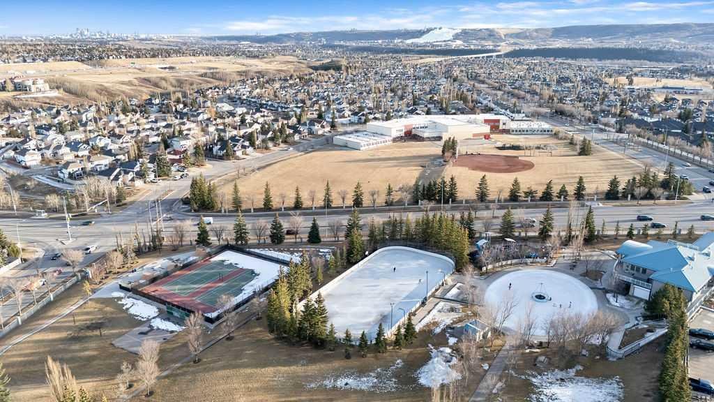 THIS BEAUTIFULLY RENOVATED, TURN-KEY HOME IN DESIRABLE TUSCANY OFFERS STUNNING MOUNTAIN VIEWS FROM AN ELEVATED LOT AND IS LOADED WITH HIGH-VALUE UPGRADES THROUGHOUT! Recent improvements include fresh modern paint, updated flooring, stylish lighting, upgraded electrical, new appliances, quartz countertops, fully renovated bathrooms, plush new carpet, newer roof, hot water tank, and exterior gemstone lighting, delivering a true move-in-ready experience. The BRIGHT OPEN-CONCEPT INTERIOR showcases a functional flowing floor plan with a spacious kitchen complete with pantry, while the MAIN LEVEL LIVING AREAS feature beautiful custom trimwork and unique architectural details that add warmth, character, and timeless design appeal. A GRAND OPEN-TO-ABOVE ENTRANCE creates an impressive first impression and enhances the home’s bright, airy feel. The thoughtfully designed layout captures sweeping sight lines and breathtaking mountain views from the living room, primary bedroom, luxurious ensuite, and backyard patio — creating a peaceful everyday retreat and the perfect setting for entertaining. The SUNNY SOUTH-FACING BACKYARD offers a patio and deck designed to take full advantage of the incredible mountain views and create an inviting outdoor setting for gatherings and relaxation. THE OVERSIZED MECHANIC’S DREAM GARAGE IS TRULY ONE-OF-A-KIND! featuring a mezzanine and massive 9’x10′ oversized doors large enough to accommodate an RV plus a fully outfitted workspace complete with compressed air lines, fixed machinery & equipment, a 9000 LB 4-POST LIFT, 14,000 LB 4-POST LIFT, and an 80-GALLON AIR COMPRESSOR. With the installed lifts, UP TO 4 VEHICLES CAN BE PARKED INSIDE, an exceptional opportunity for mechanics, collectors, hobbyists, or anyone needing serious functional space. Beyond the home itself, life in Tuscany means access to one of Calgary’s most sought-after communities: Tuscany Club with skating rink, splash park, tennis & pickleball courts, and year-round programs. 170+ acres of ravines, parks, and pathways, plus breathtaking Rocky Mountain views. Convenient shopping at Tuscany Market, nearby Crowfoot Crossing, and quick access to the Tuscany C-Train Station for an easy downtown commute. This move-in ready property offers the perfect combination of location, lifestyle, and long-term value. Don’t miss your chance to call this home!