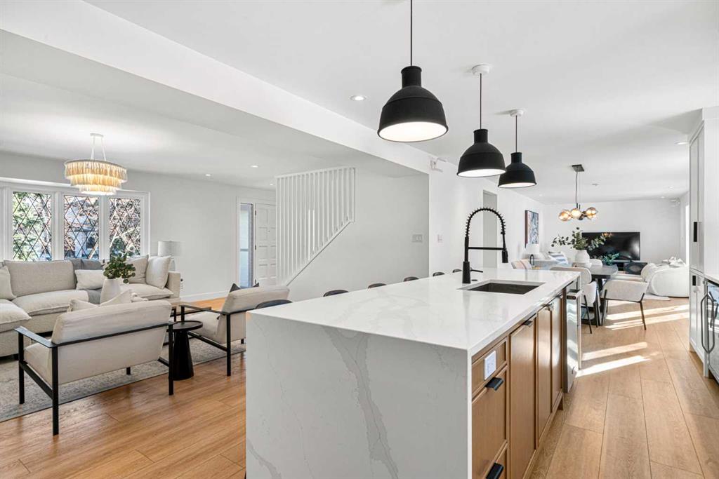 This is your opportunity to live in a spectacular, fully renovated two storey residence, located on a quiet, private cul-de-sac in the heart of Varsity, one of Northwest Calgary’s most prestigious family communities. Warm & welcoming, this extraordinary property offers an impressive 3,817 sq ft of living space (2,670 + 1,147), upgraded & designed for growing families who value space, comfort & convenience. Featuring 6 spacious bedrooms & 3.5 bathrooms, this bright, sunny home offers a functional open concept layout ideal for both everyday living & entertaining. The spacious living room is highlighted by a large bow window with adjacent fireplace, flowing seamlessly into a gourmet designer kitchen complete with Caesarstone countertops, a massive island with eating bar, modern backsplash & beautifully crafted two-toned cabinetry. Upgraded appliances, an induction cooktop & gleaming engineered wood floors complete this stunning space. The inviting family room opens through sliding doors to your expansive, private south facing backyard. Set on an oversized 70’ x 132’ lot, the outdoor space is a true oasis, featuring mature trees, low maintenance landscaping & ample room for children & hosting unforgettable gatherings. Upstairs, the home offers five generously sized bedrooms, all with hardwood flooring & excellent closet space. The owner’s retreat is a standout feature, complete with cork flooring, a large walk-in closet & sliding doors to a private upper deck, ideal for enjoying sunny south facing views. The beautifully renovated ensuite includes custom cabinetry, a soaker tub plus a tiled shower. A 5 piece family bathroom with double vanities & a separate, functional laundry space complete the upper level. The fully finished basement offers more flexibility with a large recreation room featuring plush carpeting, an spacious 6th bedroom, a renovated 4-piece bathroom, massive storage area, a hobby room & a massive mechanical area for additional storage or workshop. Highlights include a convenient side entrance mudroom with built-in lockers – perfect for busy families, a main floor powder room, central vacuum, updated windows, recent roof shingles, two new high-efficiency furnaces, AC, on-demand hot water & an oversized double attached garage. Located steps from playgrounds & nestled among mature trees, this home sits in a peaceful setting within a neighbourhood recognized as one of Calgary’s best. Varsity offers a master planned community atmosphere with an extensive network of quiet pathways, parks, tennis courts, soccer fields & multiple playgrounds. Access top rated schools: Marion Carson Elementary (Mandarin Immersion), Varsity Acres (French Immersion), St. Vincent de Paul, F.E. Osborne JR High & Sir Winston Churchill HS, UofC, University District, Brentwood Village, Northland Centre, the Brentwood LRT station. Foothills Medical Centre & Alberta Children’s Hospital are minutes away, along with countless parks, pathways & everyday amenities.