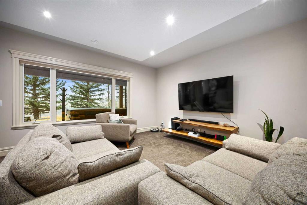 Discover the perfect blend of luxury, comfort, and breathtaking scenery in this beautifully updated Bungalow situated on the Prestigious Gleneagles Landing, boasting expansive mountain views, a fully finished walkout basement, and a triple attached garage. Offering an unparalleled living experience through a perfect main floor layout, with the kitchen, living room, and primary suite all designed to frame the stunning, elevated mountain vistas. This four bedroom home maximizes living space, and includes two and a half bathrooms which include a luxurious five-piece ensuite and a spacious four-piece bath on the lower level which hosts a relaxing steam shower. The chef’s kitchen features granite countertops, newly painted cabinetry, a custom backsplash, a Wolf gas range, and a new double Dacor wall oven. Enjoy open-concept living with luxury hardwood floors, a tray ceiling, and new lighting throughout. An open spiral staircase leads to the lower walkout level and serves as an elegant centrepiece of the home. The lower level offers unobstructed mountain views, and features a custom wet bar, a large living area, new carpet, a dedicated gym space with access to the beautifully landscaped and fenced backyard. Additional exterior features include underground irrigation, a private fire pit area, and a hot tub for relaxing while taking in the views. Well maintained with a surplus of upgrades including 15 new windows, exterior paint, and a new boiler with six-zone in-floor heating, Central Air Conditioning, and a new water softener. The heated, triple garage has been freshly painted, with new lighting and shelving installed, providing ample space for vehicles and toys. Enjoy the serenity of the mountains, the convenience of a modern, upgraded home, and the privacy of a fully landscaped, scenic lot. Don’t miss this rare opportunity to own a turnkey home with one-of-a-kind views. Enjoy an elevated lifestyle with miles of pathway just outside your door with easy access to Glenbow Ranch Provincial Park, Golf at the Links of Gleneagles just up the street, or enjoy a dinner at the Eagles Nest lounge. Community features also include school buses and COLT (Cochrane’s own on-demand transit) stops nearby. Convenient access to the city, with only a 30-minute commute to downtown Calgary.