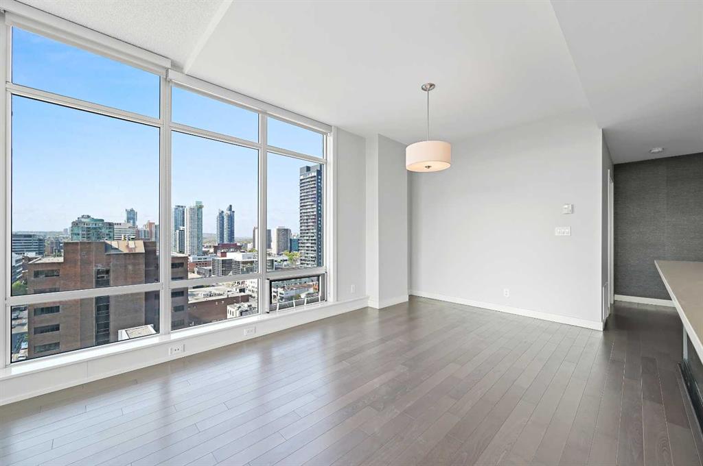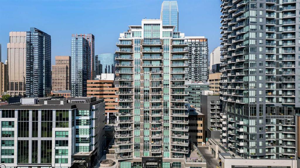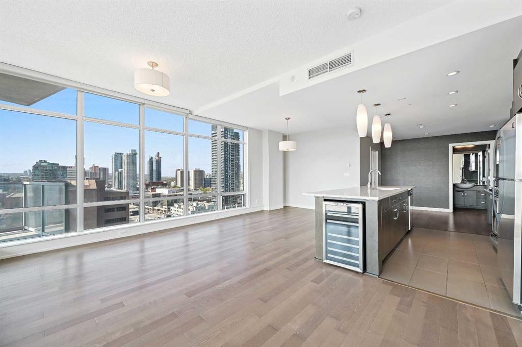 Experience elevated urban living in this extra-spacious two-bedroom, two-bathroom corner suite perched on the 14th floor of the prestigious Castello building. Wrapped in floor-to-ceiling windows, this home is flooded with natural light and showcases sweeping views of Calgary’s vibrant Beltline and downtown skyline. The thoughtfully designed layout separates the dual bedrooms, ensuring privacy while keeping the open-concept living, dining, and kitchen areas bright and connected. The primary retreat is a true sanctuary—featuring a 5-piece ensuite with an oversized glass-and-tile shower, double vanity, separate water closet, and a generous walk-in closet with custom built-ins. The spacious second bedroom features double closets and is conveniently located next to a stylish 4-piece bathroom, ideal for guests or family members. Freshly painted and beautifully finished, this suite boasts hardwood flooring, stone counters throughout, a new electric stove, a beverage fridge, custom wall coverings, and a convenient telephone desk. Enjoy the convenience of double side-by-side underground parking stalls and a separate storage locker. Step outside onto the expansive 17×24 ft balcony with a gas BBQ hookup—your private outdoor oasis with west-facing views, ideal for entertaining or unwinding. Castello offers residents an array of amenities including a large fitness studio, social room, guest suite, visitor parking, concierge service, and a stunning lobby that sets the tone from the moment you enter. Perfectly situated in the heart of the Beltline, you’ll love the easy access to 17th Avenue, Mission District, Memorial Park Library, BMO Centre, Stampede Grounds, shops, cafes, and the downtown core—all within walking distance. Professionally managed by Equium, with availability for May move-in. This is city living at its finest—don’t miss your opportunity to call the Castello home.
