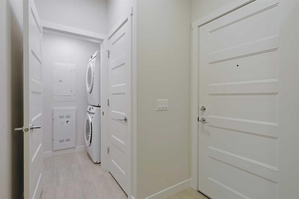 This is your chance to make your home in THE WESTBERRY…from the award-winning builder Cove Properties here in Arbour Lake West just minutes to all the top-notch shopping, restaurants & services in Crowfoot Centre. Located on the top floor of this upscale boutique condo project, this bright & airy 1 bedroom home enjoys quartz countertops & toasty infloor heating, sleek full bathroom, titled underground parking & wonderful views of the surrounding neighbourhood & horizon. Available for quick possession, you will love the free-flowing design with its high ceilings & recessed modern lighting, open concept living/dining room & beautiful kitchen with soft-close cabinetry & tile floors, glistening quartz counters & Samsung stainless steel appliances. The bedroom is a terrific size & is complemented by a tray ceiling, with large walkthrough closet into the bathroom with walk-in shower & quartz-topped vanity. Insuite laundry/storage with space-saving Whirlpool washer & dryer. Off the living room is your covered Northeast-facing balcony complete with gas BBQ line & peek-a-boo views of the stormwater pond. In the underground parkade is your titled parking stall with adjoining storage locker. Residents of THE WESTBERRY also have access to bike storage, inviting lobby with lounge, ample parking for your guests & is walking distance to a park with playground & stormwater pond. The Arbour Lake Residents Club & the lake are just moments away…with its beaches, tennis courts & playground, & the site of year-round community activities: fishing & boating, ice skating & more. Prime location within walking distance to bus stops, close to neighbourhood schools & the shopping, restaurants & LRT at Crowfoot Centre are all within easy reach. Quick access to Stoney & Crowchild Trails, providing easy access to University of Calgary & hospitals, major retail centers, Shane Homes & Melcor YMCAs, golf courses & downtown.