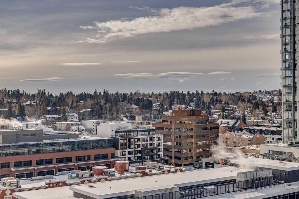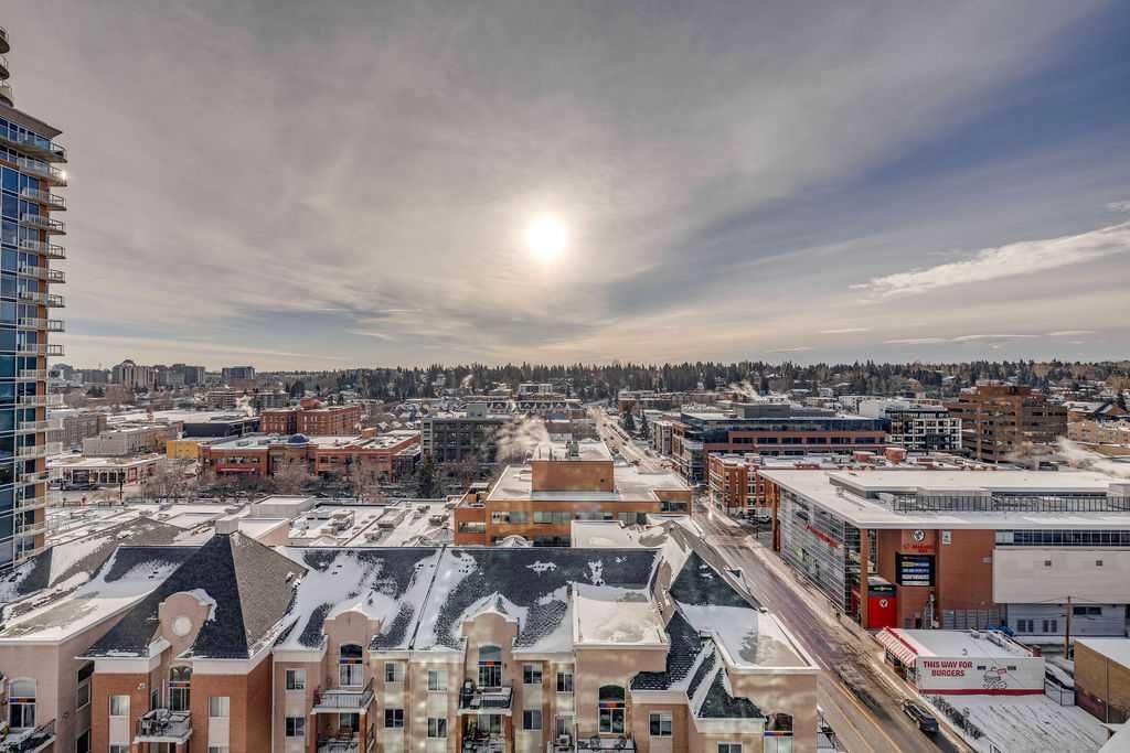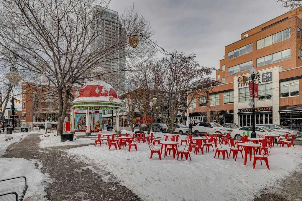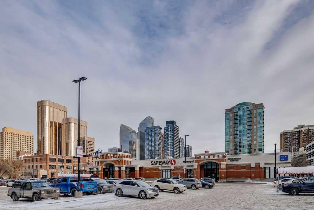 Live with ease just moments from Downtown Calgary in this exceptional two-bedroom residence at Emerald Stone, ideally positioned off vibrant 17th Avenue SW. Surrounded by some of the city’s best shops, cafés, fitness studios, grocery stores, and everyday conveniences, this location delivers true urban walkability with a refined residential feel. Unit 1402 offers a thoughtfully designed floor plan that balances openness with comfort. The spacious open-concept kitchen anchors the home, making it ideal for both everyday living and entertaining. The adjacent living area flows seamlessly onto an expansive balcony, where sweeping views of South Calgary, the mountains, and the energy of 17th Avenue create a stunning backdrop. Both bedrooms are impressively proportioned, offering flexibility for a guest room, home office, or serene primary retreat. The home is further enhanced by in-suite laundry with a front-loading washer and dryer, adding everyday convenience. Emerald Stone is a secure, well-managed concrete building featuring underground parking and an outstanding collection of resident amenities, including a fully equipped fitness centre, billiards, and foosball tables. A titled underground parking stall, complete with a private storage unit and bike parking, completes the offering. Well maintained and exceptionally located, this move-in-ready home presents an outstanding opportunity to enjoy downtown living with comfort, views, and lifestyle at the forefront. Don’t miss Unit 1402 at Emerald Stone.