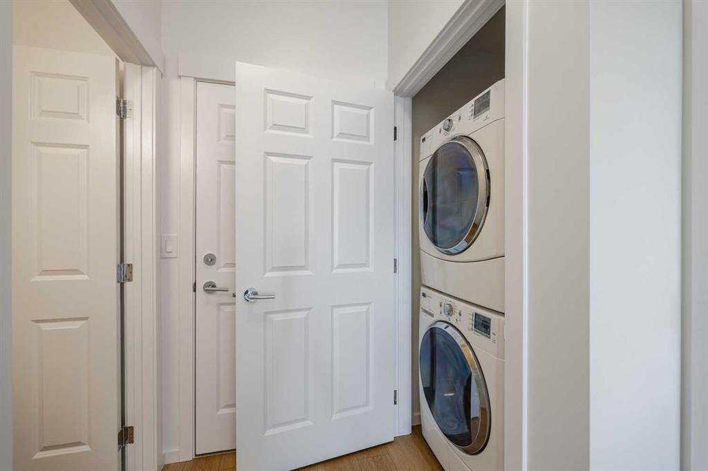 **Open House, Friday Feb 20, 3:30 – 6 p.m. & Saturday Feb 21, 2 – 4 p.m.** Incredible opportunity! This sunny and bright top floor apartment (no neighbours above) has a huge south facing patio with unobstructed views including stunning mountain views to the West. The new owner will enjoy brand new updates including new flooring (LVP in living area + carpet in bedroom), new lighting and paint through the entire unit including ceilings, gorgeous new stainless steel sink and faucet in the kitchen. More features include ensuite laundry, granite counters, double pocket doors to the bedroom, a nook for a desk or more storage and a nice tub and shower combo in the bathroom. Inside the unit you will find two large closets for coats and clothes plus an additional assigned underground storage room. Park in your titled parking stall with plug-ins and enjoy a wonderful lifestyle in this quiet community with close access to ponds, walking paths, parks (just across the street), New Brighton Athletic Park, playgrounds and schools. Incredible amenities are nearby including shopping, restaurants, medical offices, and quick access to the ring road and Deerfoot Trail. Opportunities like this don’t come to market often in Calgary!