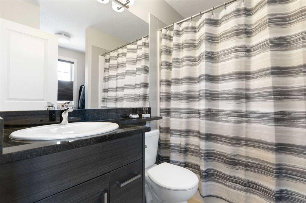 This home offers an open-concept living and dining area which boasts laminate flooring, abundant natural light, and a convenient two-piece bath tucked down the hall. The dining area leads out to your private, fenced backyard and deck with a gas BBQ hookup—perfect for relaxation, pets, and small children. Upstairs, the expansive primary bedroom is a true retreat with a walk-in closet and a luxurious 4-piece ensuite with granite. Two additional good-sized bedrooms, a second 4-piece bath (also with granite), and a dedicated laundry area complete the upper level. The lower level is undeveloped with a 3 piece rough in for another bathroom. As an added bonus the common walls in the basement have been upgraded with additional sound proofing. This home has been very well cared for by the original owner and is move in ready! A fantastic combination of location & functionality. Call for a showing today and discover why Living in Cochrane is Loving where you Live!